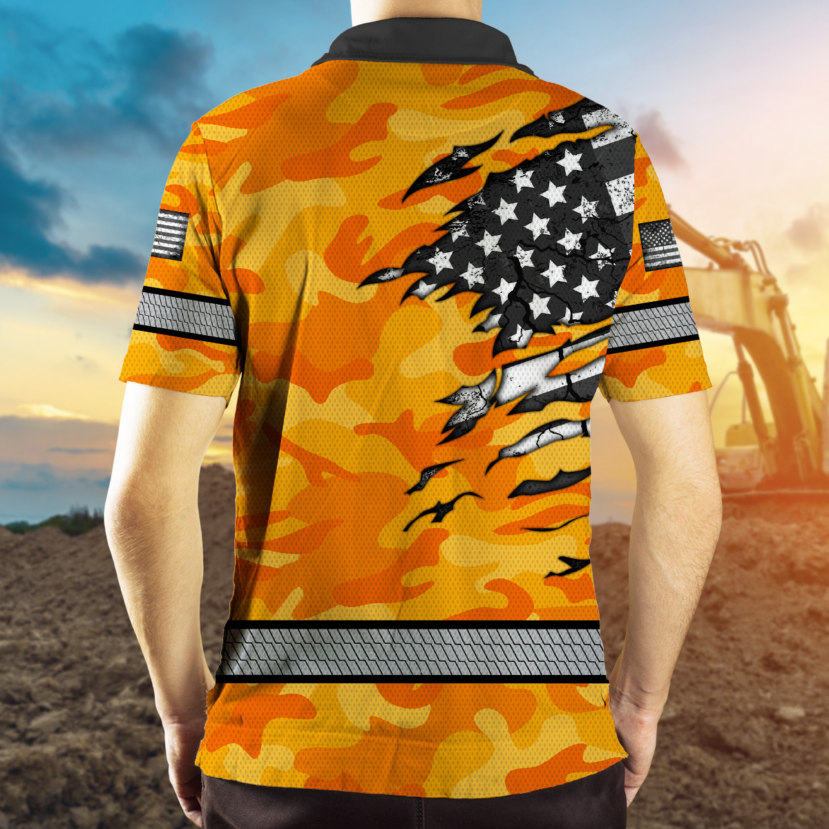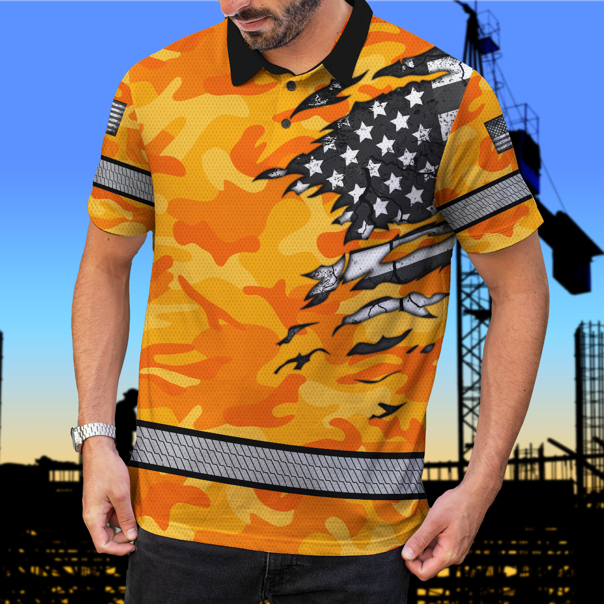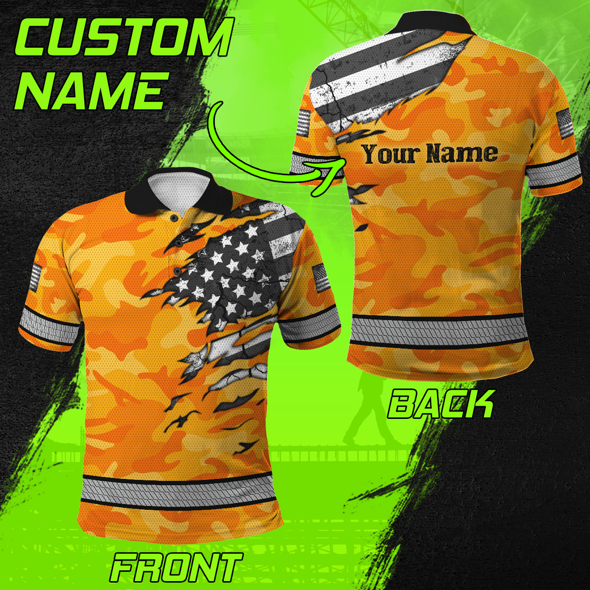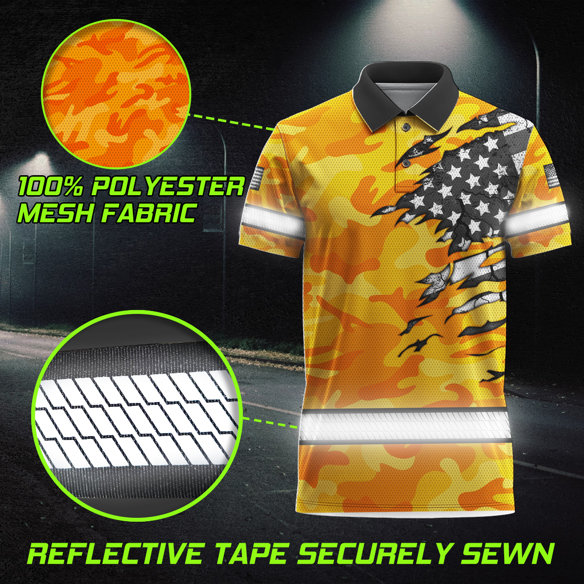 Hi Vis Polo Shirt Reflective Tapes Scratch Orange Camo Neon US Flag Custom Name Safety Workwear