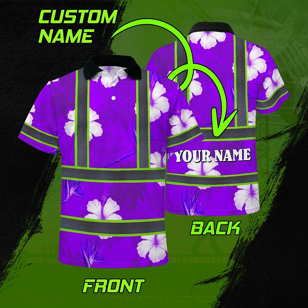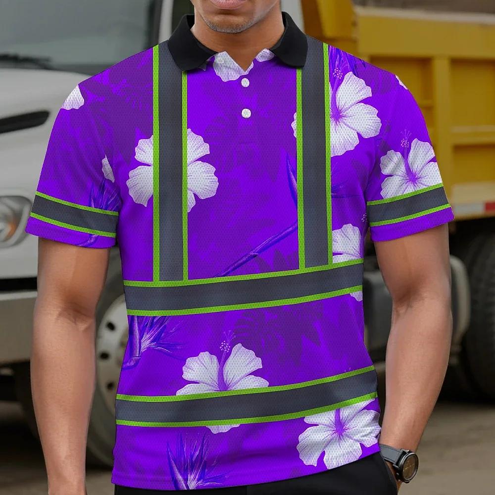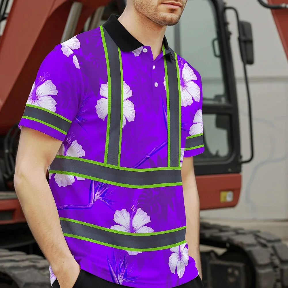 Hi Vis Polo Shirt Reflective Tapes Violet Neon Custom Name Safety Workwear For Workers, Truckers, Operators