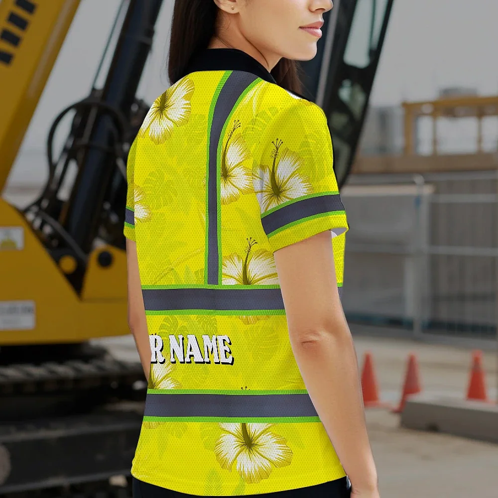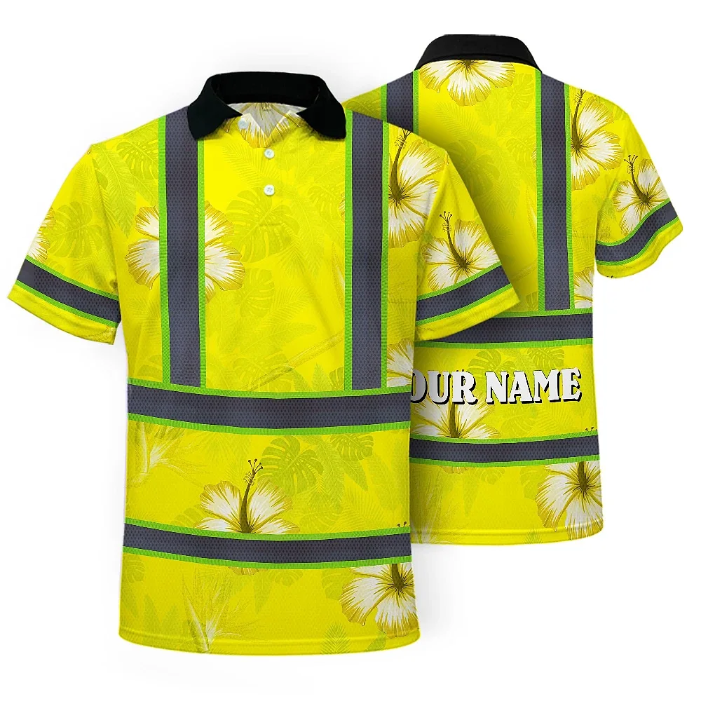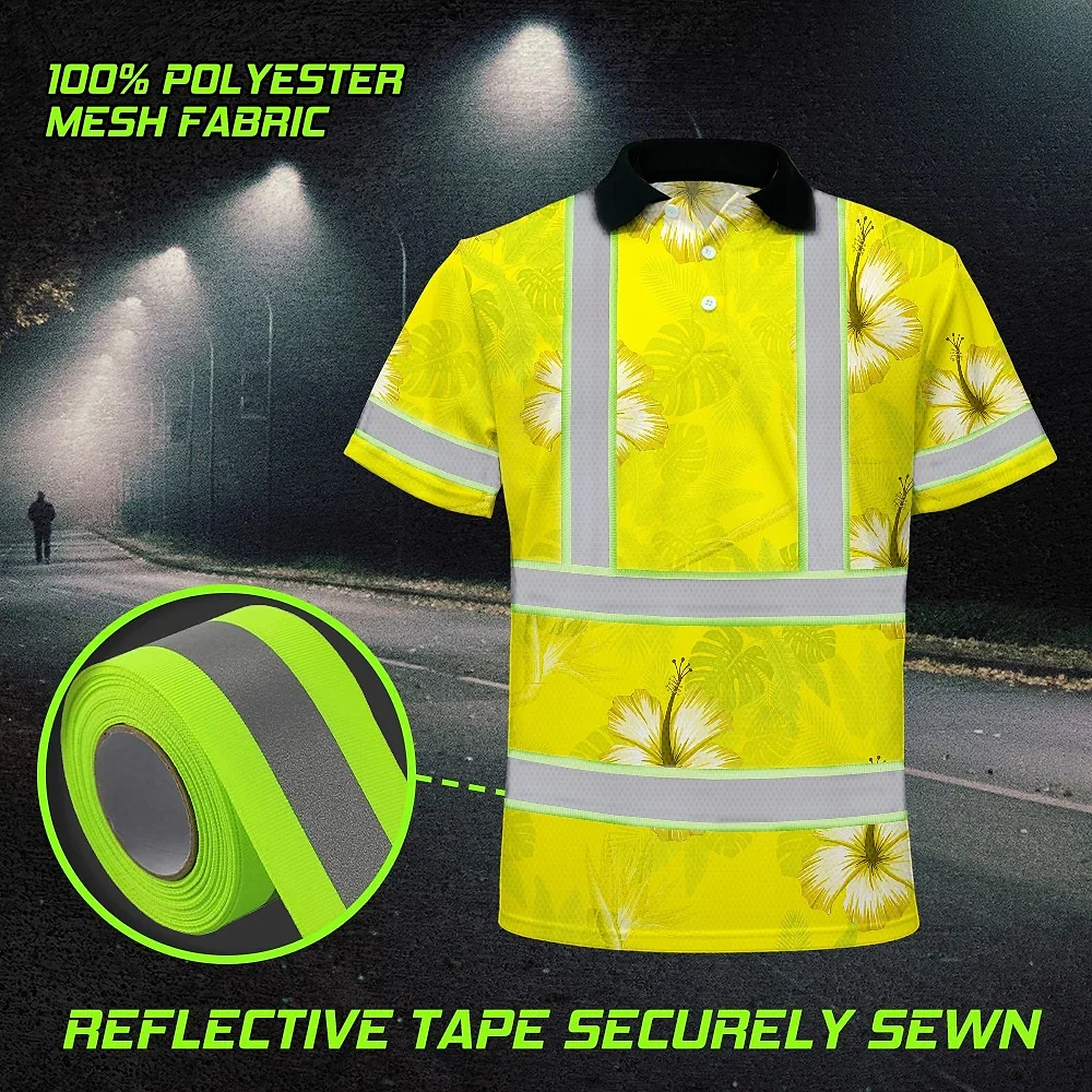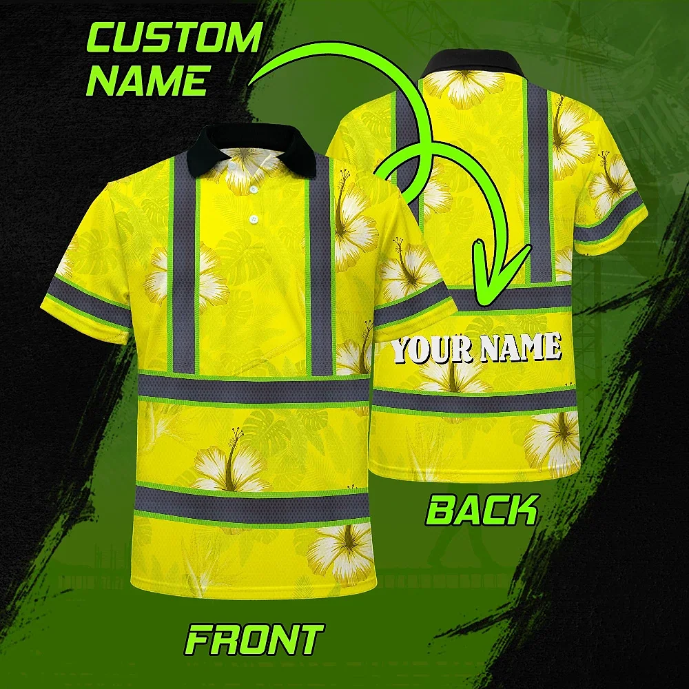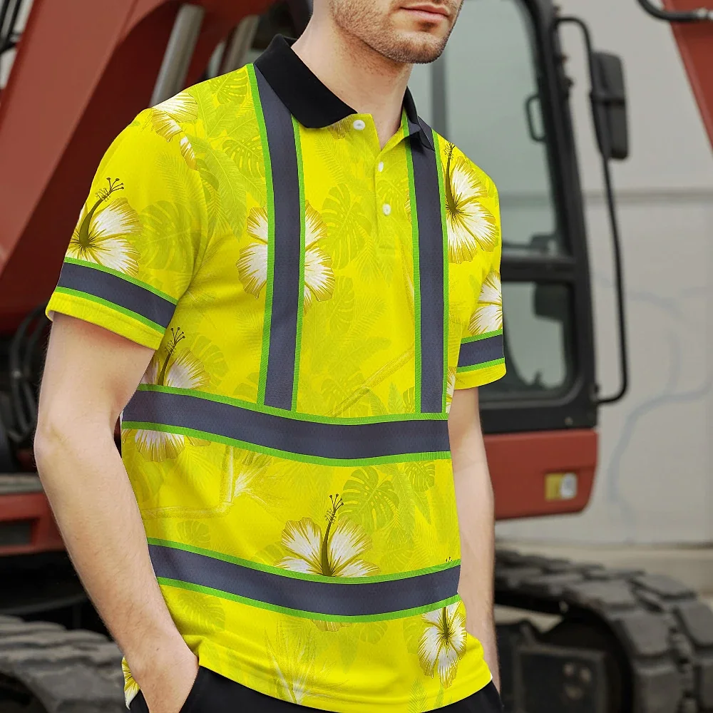Hi Vis Polo Shirt Reflective Tapes Yellow Neon Custom Name Safety Workwear For Workers, Truckers, Operators