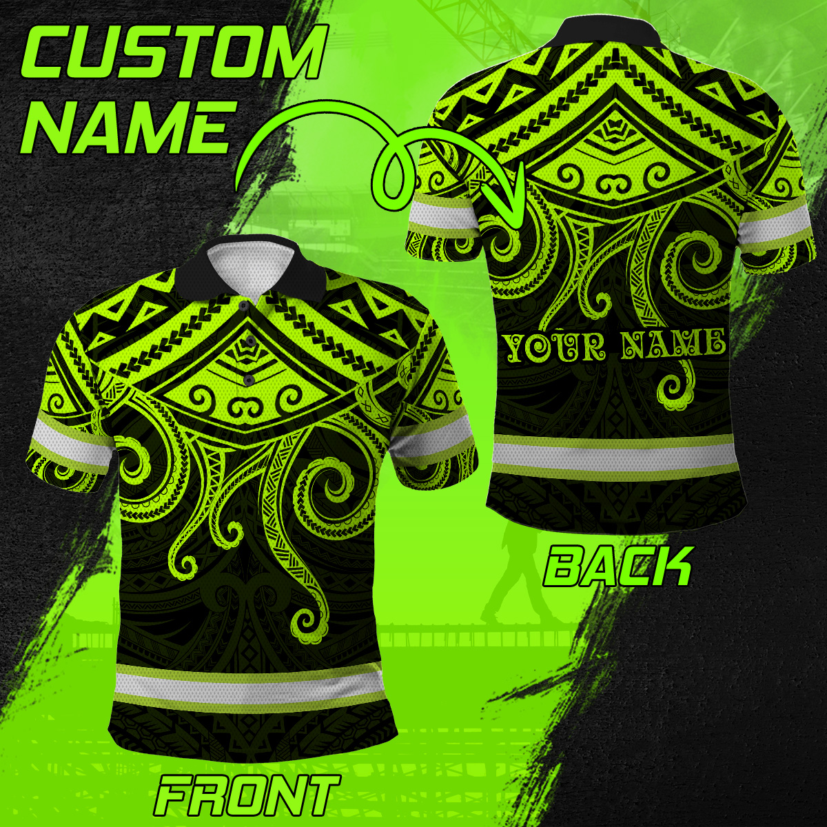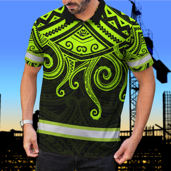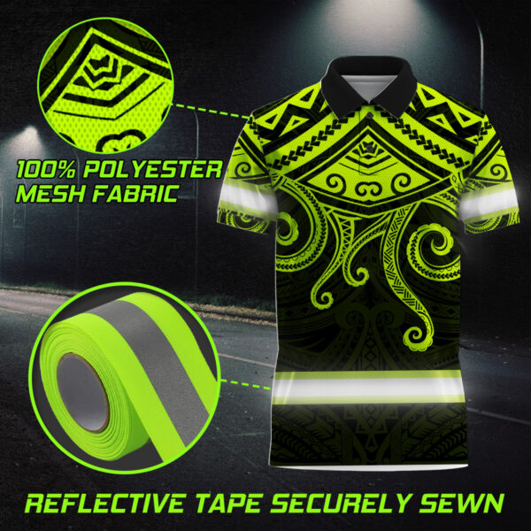Hi Vis Polo Shirts Reflective Tapes Octopus Hawaiian Polynesian Tribal Custom