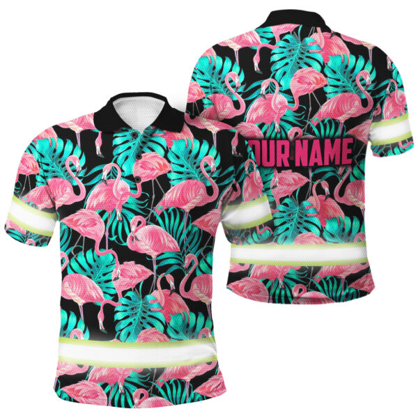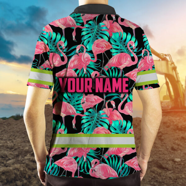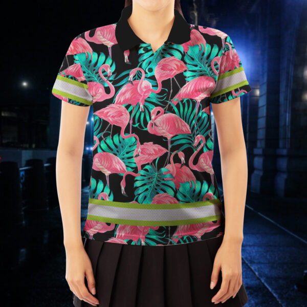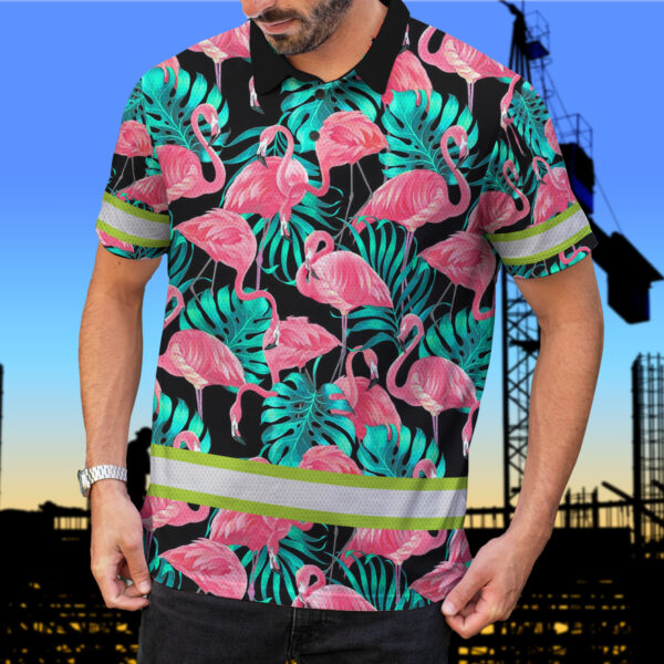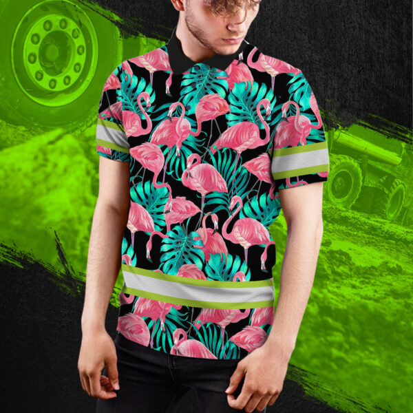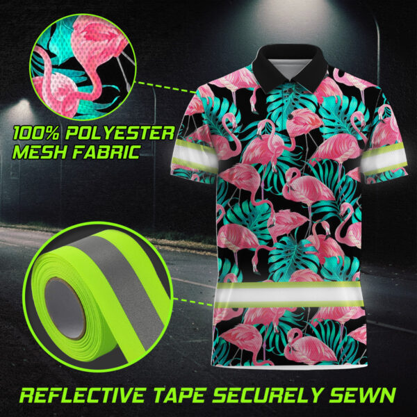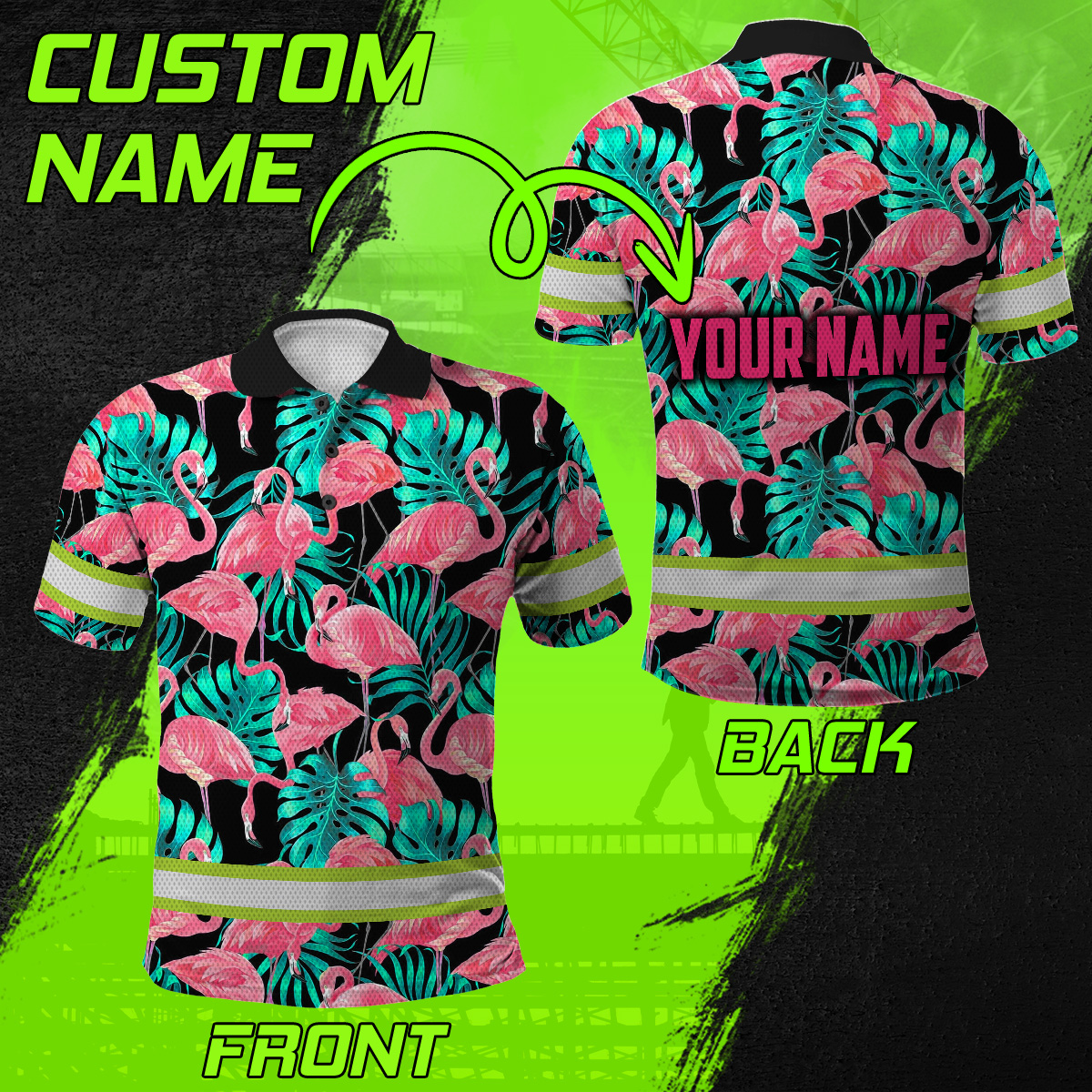 Hi Vis Polo Shirts Reflective Tapes Pink Flamingo Flower Hawaiian Custom Name Safety Workwear
