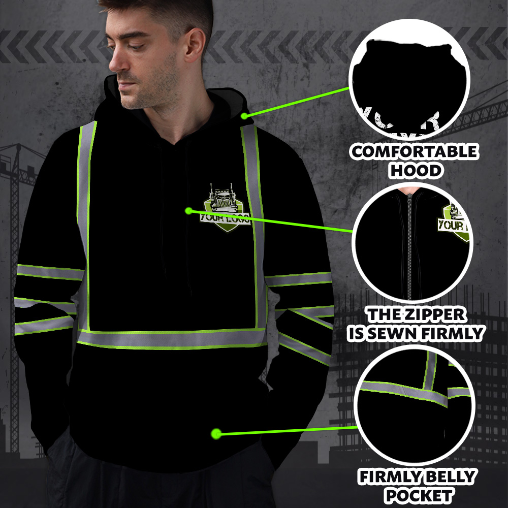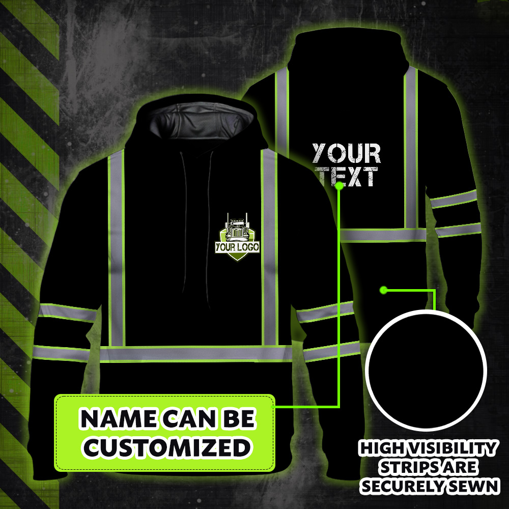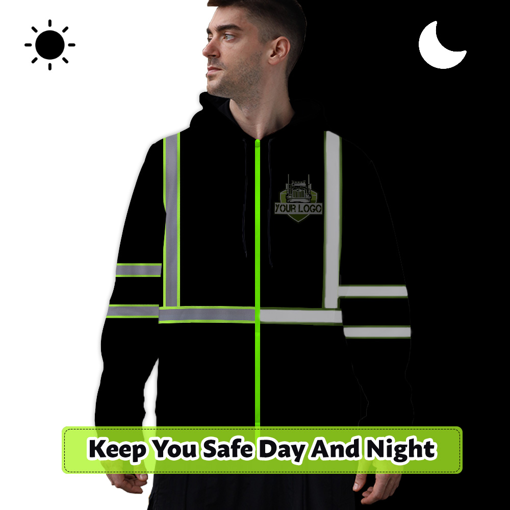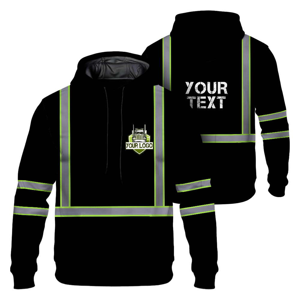 Hi Vis Reflective Black Custom Name And Logo Hoodie Safety Workwear Description