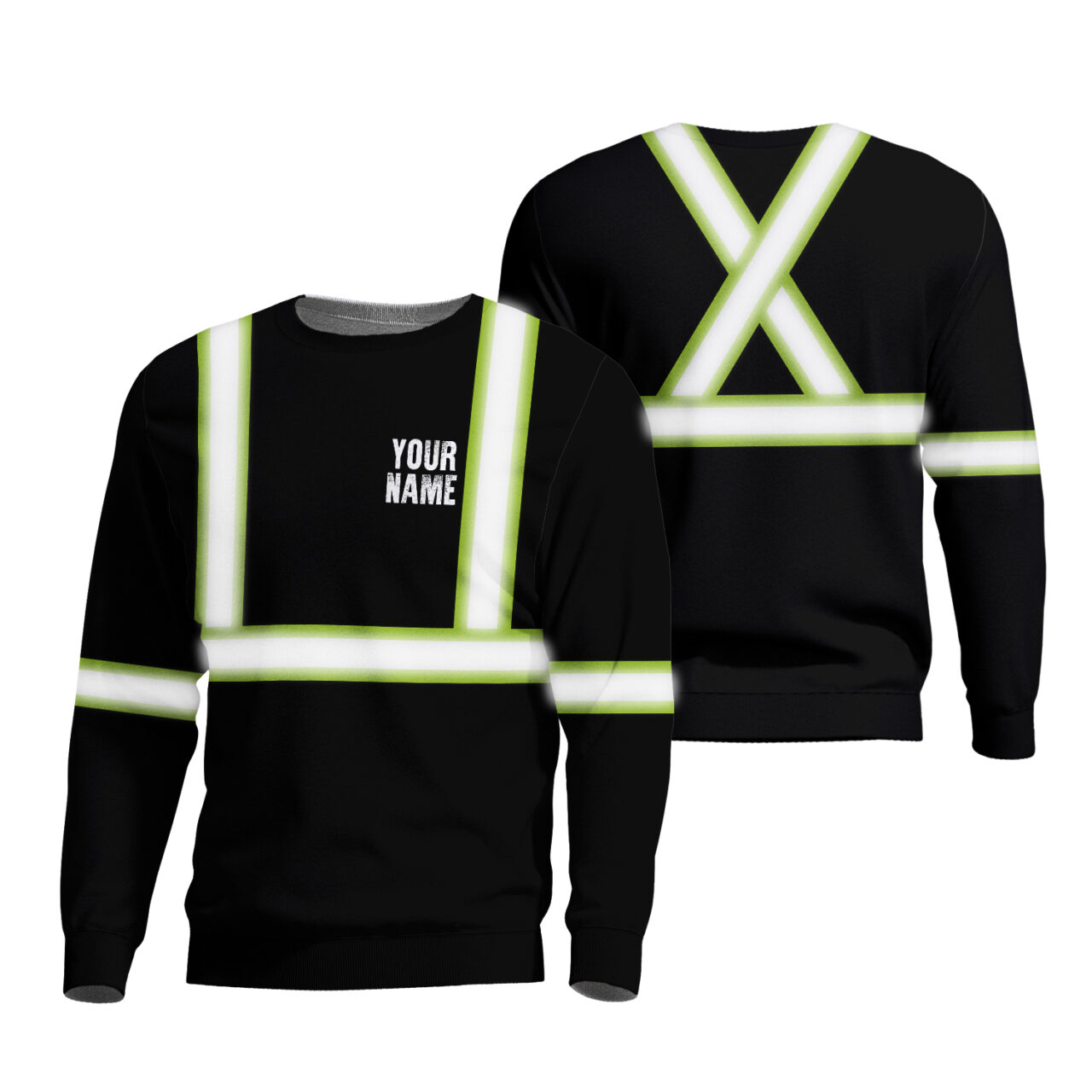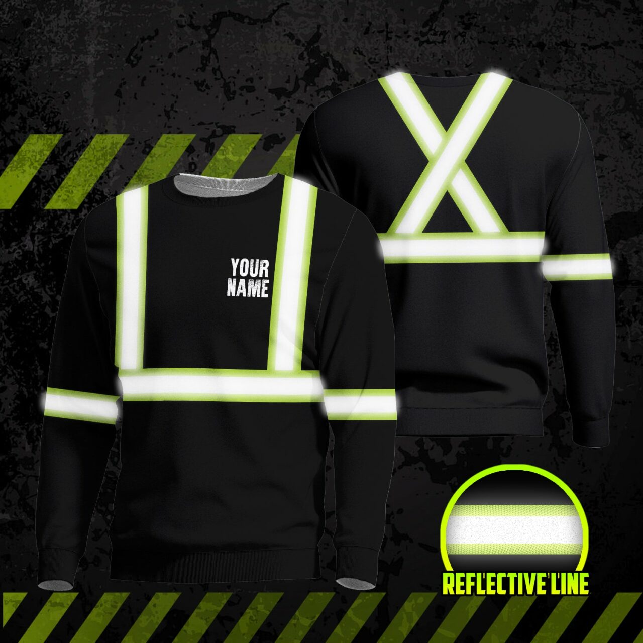 Hi Vis Reflective Black Custom Name Long Sleeve Safety Workwear
