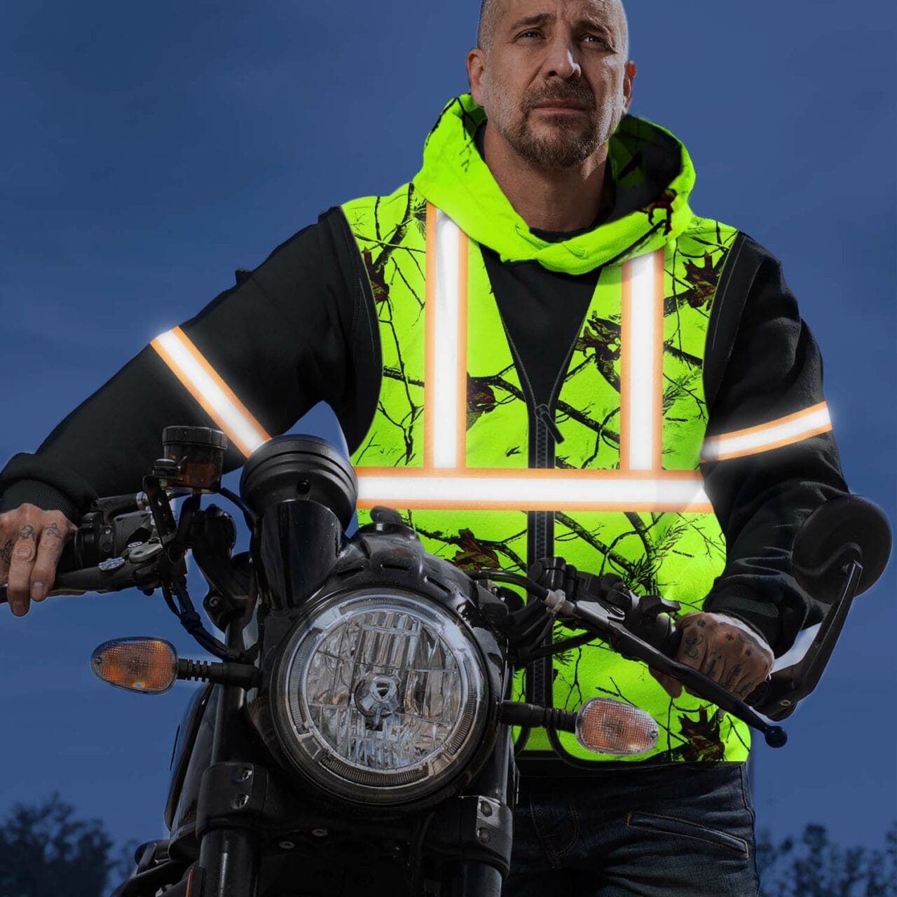 - Our hi vis hoodies are made from fluorescent materials that will reflect light, making you more visible to oncoming traffic.