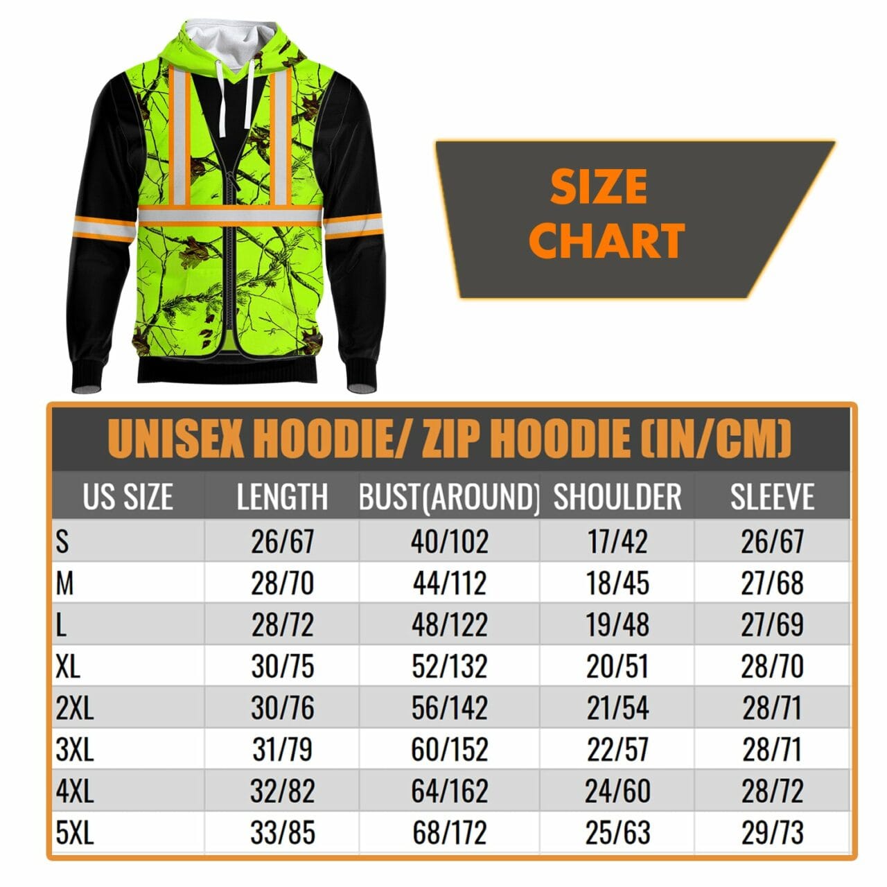 Hi Vis Reflective Camo Green Orange Line Custom Name Hoodie Safety Workwear Key Features