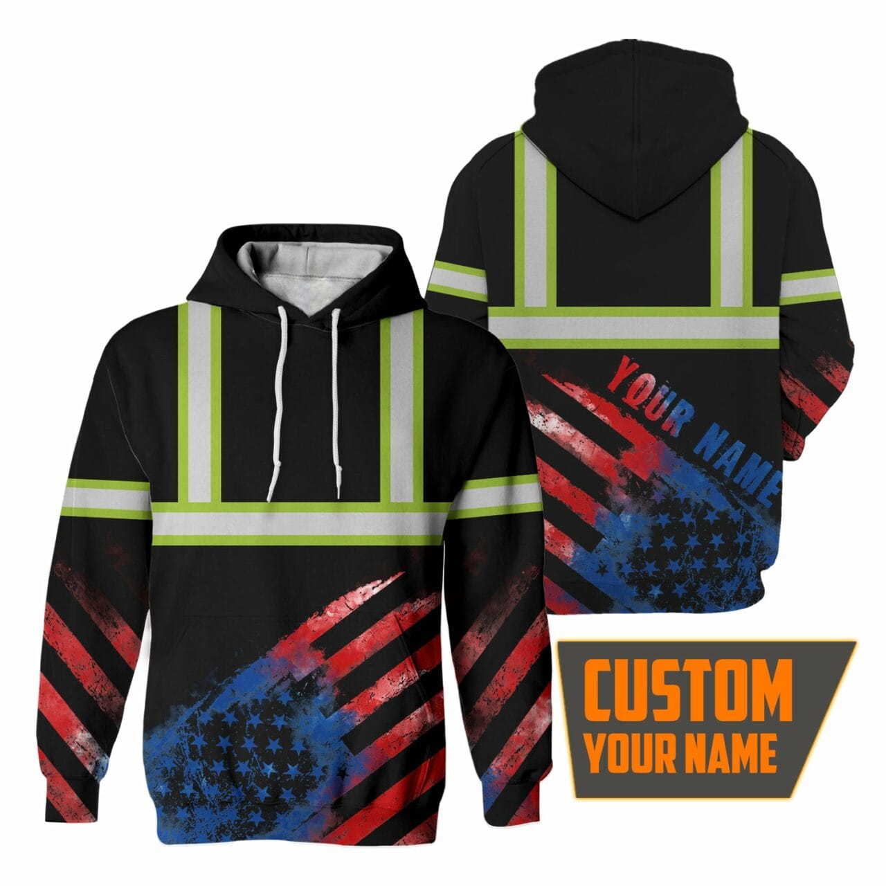 If you are looking for a high-quality and reflective hoodie to keep you safe while working, then Hi Vis Custom is the perfect place for you. We offer a wide range of safety workwear that will help you stay visible and safe on the job site. Hi vis hoodies are made from durable materials and feature vibrant colors and designs that will make sure you stand out in any crowd. Order your own custom name US flag hoodie today and be safe while looking great!