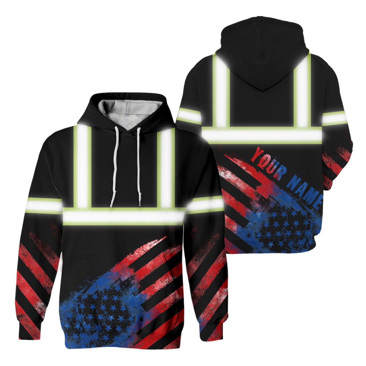 Hi Vis Reflective Custom Name US Flag Hoodie Safety Workwear