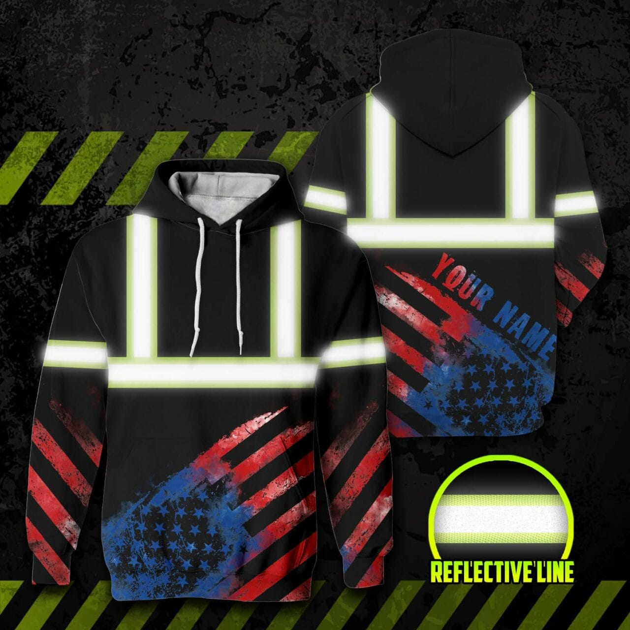 Hi Vis Reflective Custom Name US Flag Hoodie Safety Workwear Description