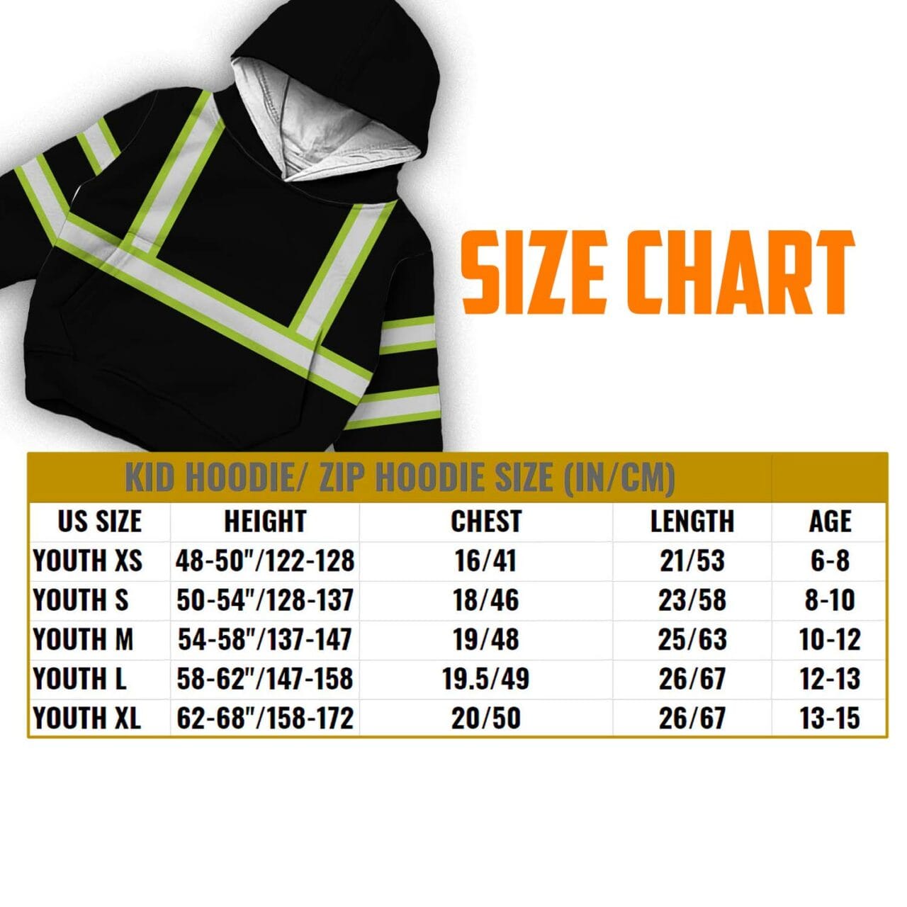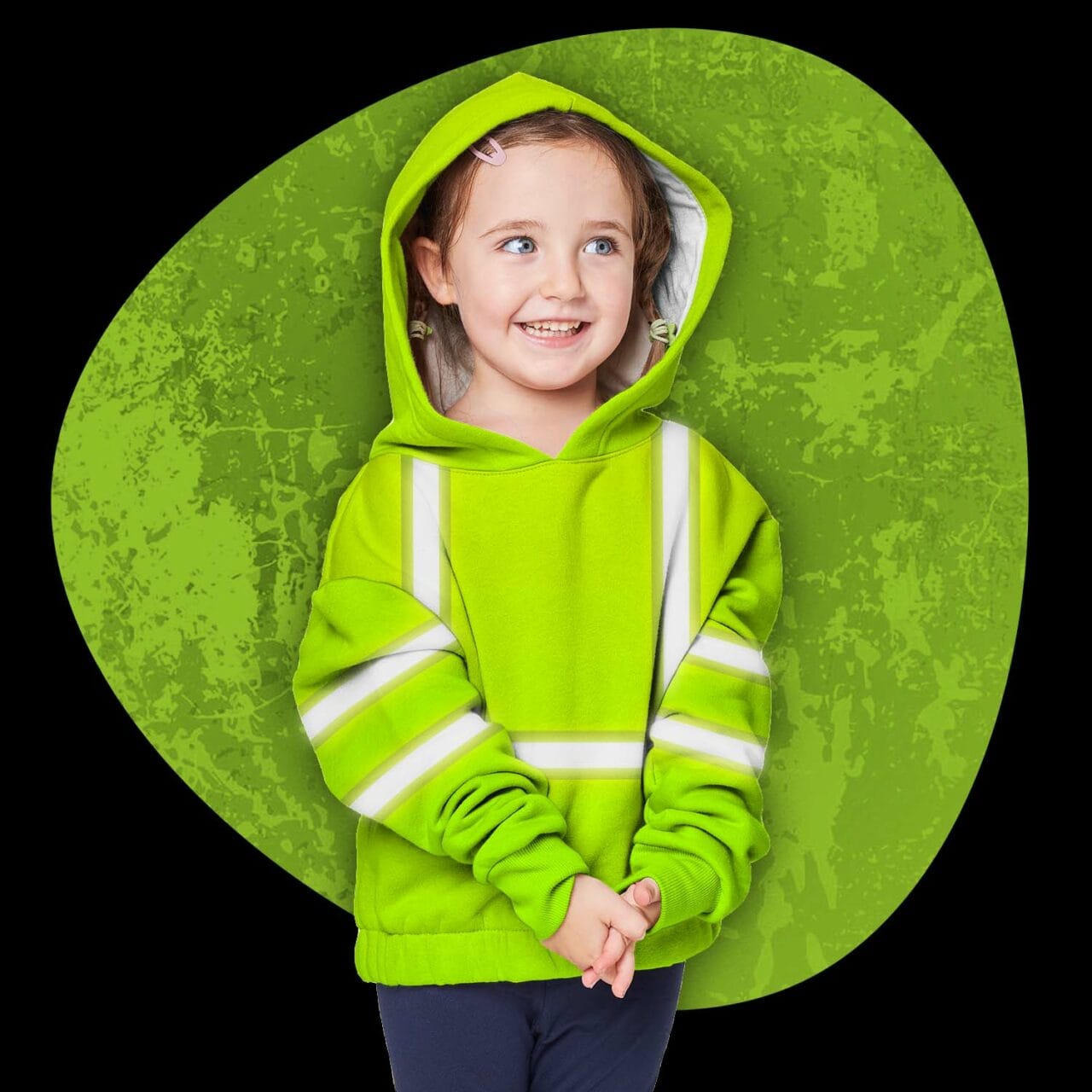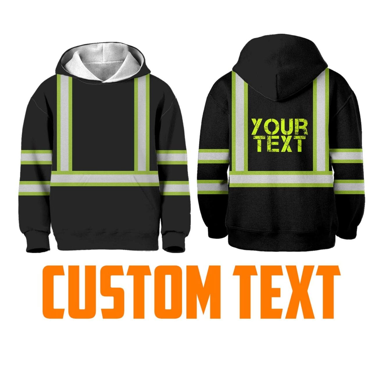 Hi Vis Reflective Green Black Orange Colors Custom Name Kids Hoodie Safety Workwear Description
