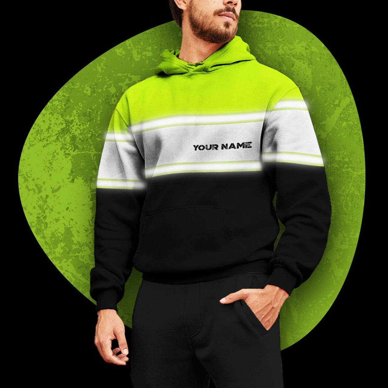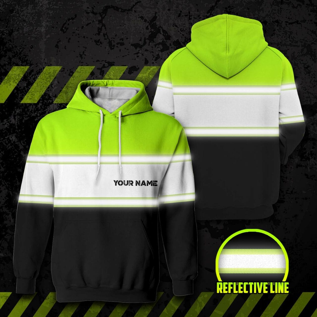 Hi Vis Reflective Horizontal Line Custom Name Hoodie Safety Workwear Key Features