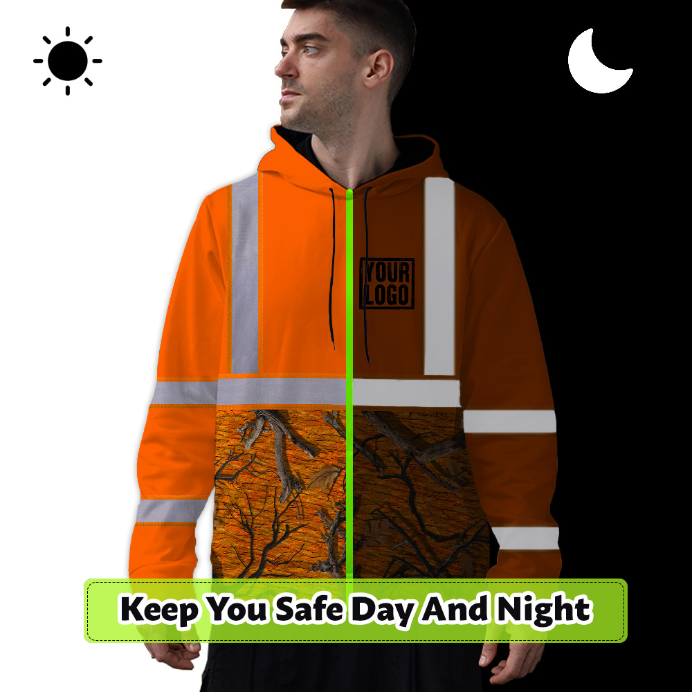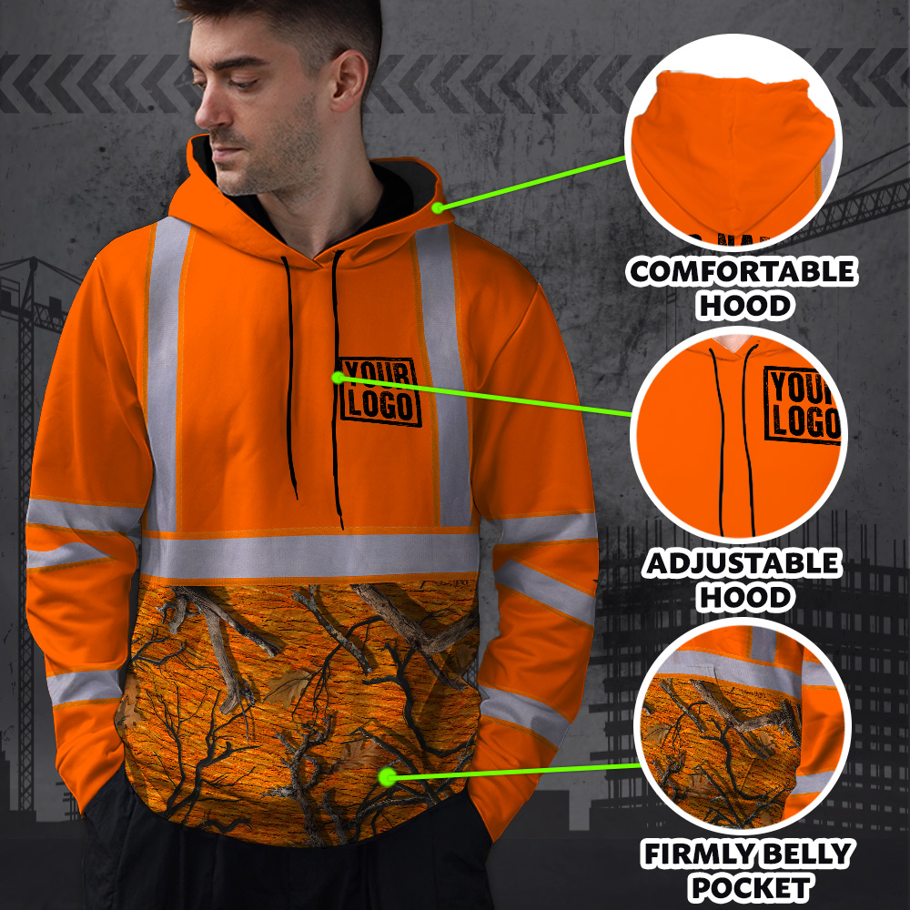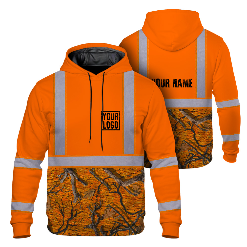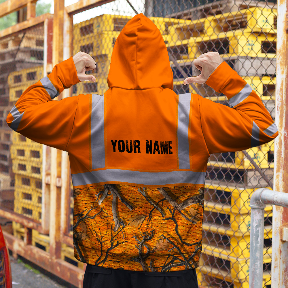 Hi Vis Reflective Orange Hunting Camo Custom Name Hoodie Safety Workwear For Hunter, Hunting Lover Key Features