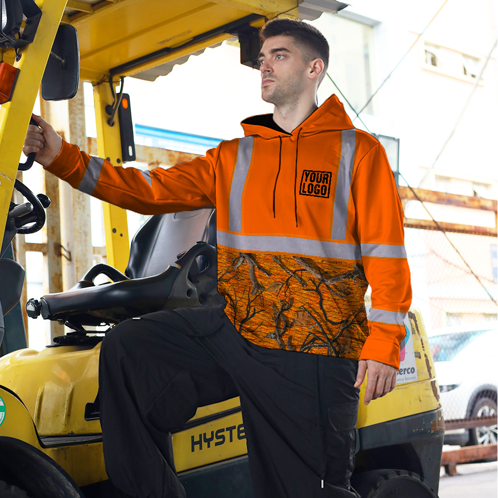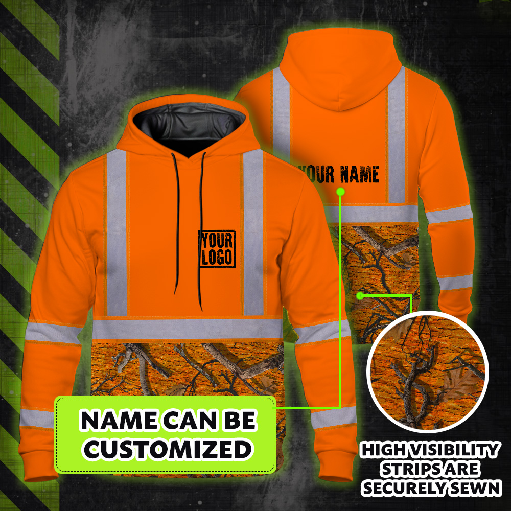 Hi Vis Reflective Orange Hunting Camo Custom Name Hoodie Safety Workwear