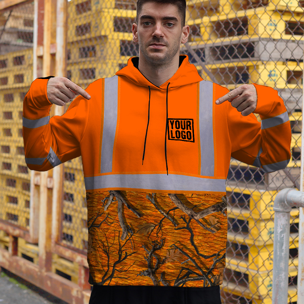 If you’re looking for a unique and stylish piece of safety workwear, look no further than our Hi Vis Reflective Orange Hunting Camo Custom Name Hoodie! This hoodie is made from high quality materials and features a reflective orange safety strip that will help you to be seen in low light conditions. Plus, it can be customized with your name or logo for a truly unique look.