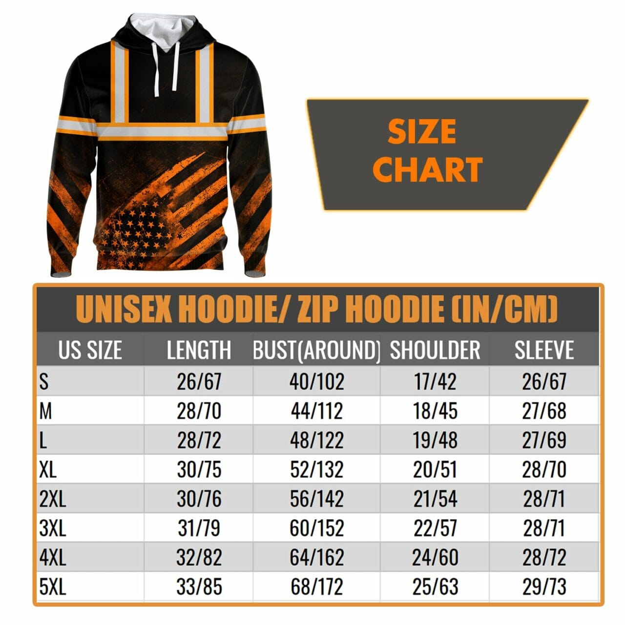 Hi Vis Reflective Orange US Flag Custom Name Hoodie Safety Workwear Description