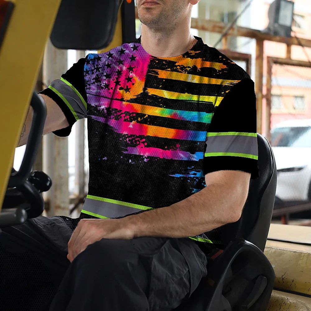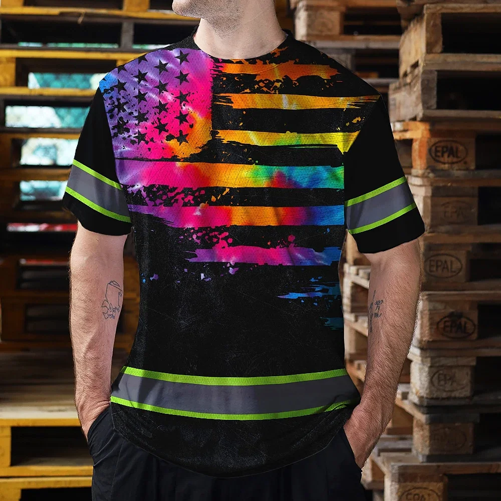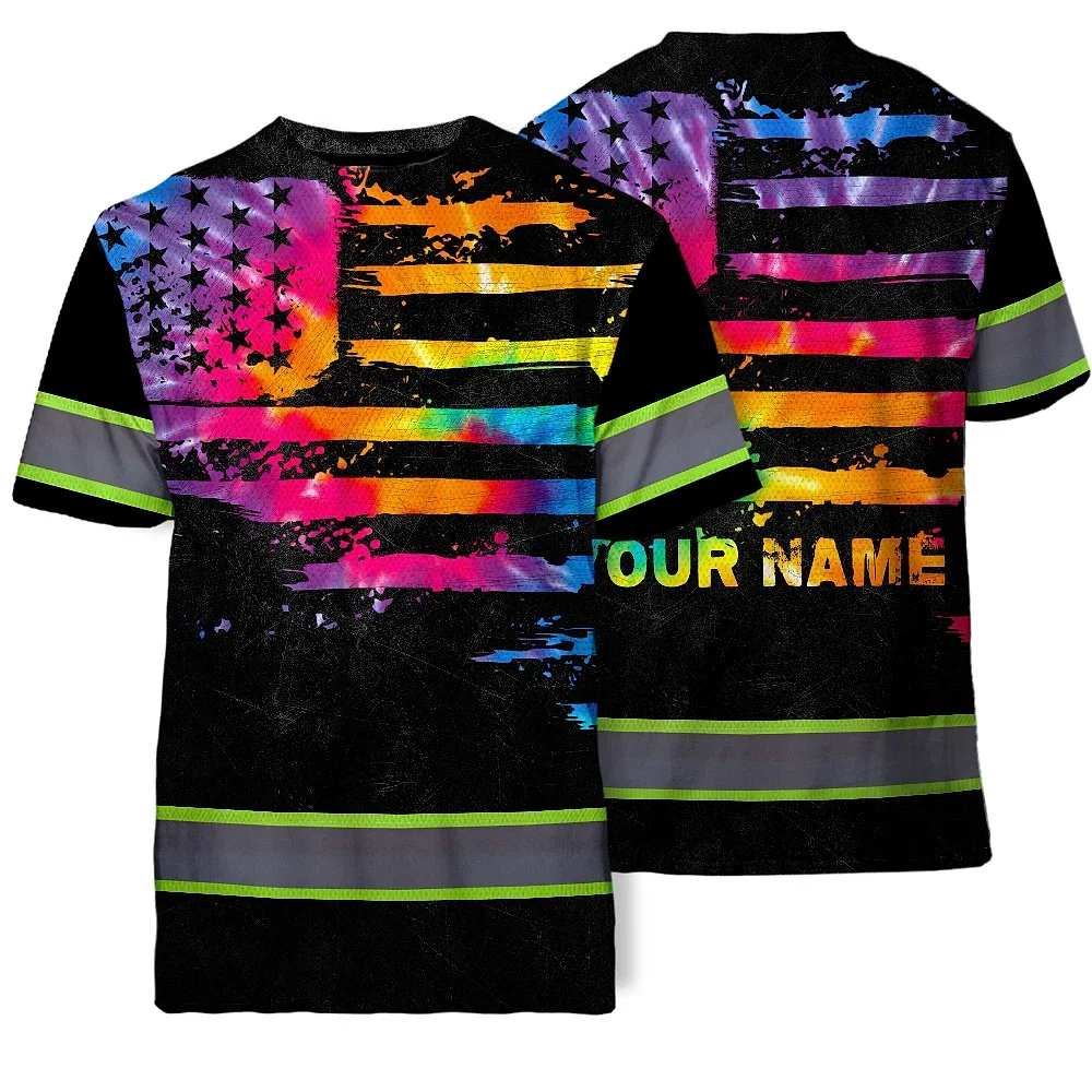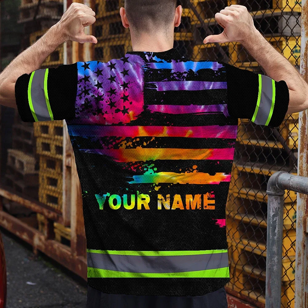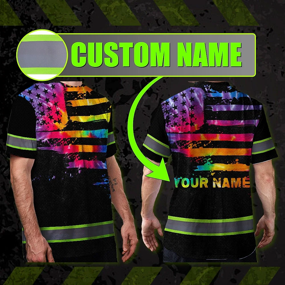 Hi Vis Reflective Tapes Rainbow Tie Dye US Flag Custom Name Safety Workwear For Workers, Runners, Cyclists