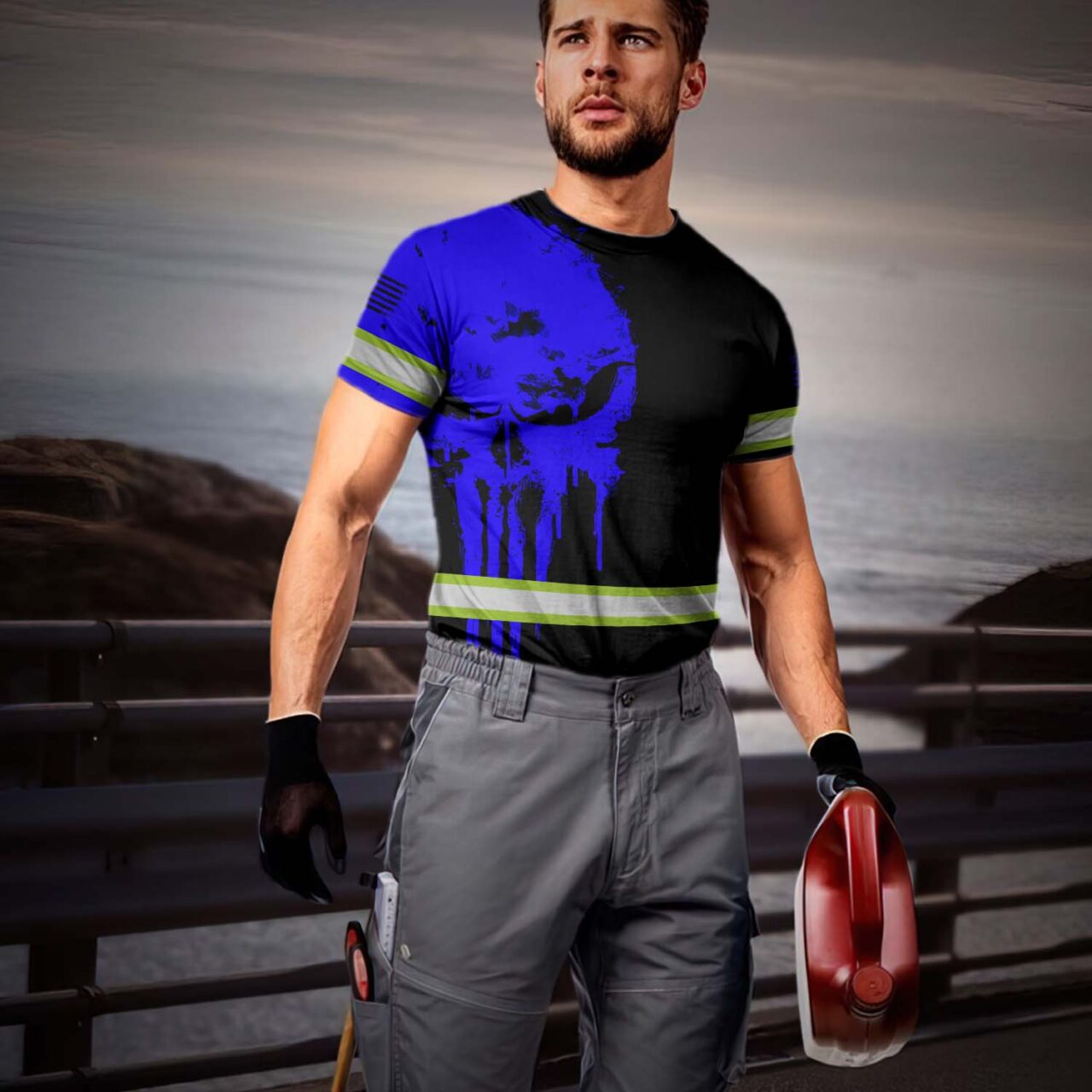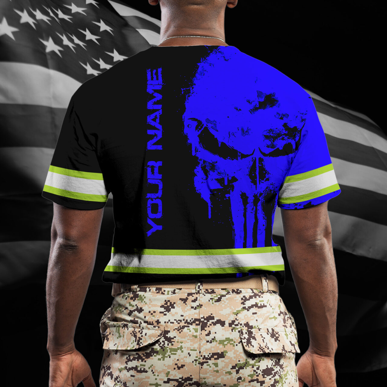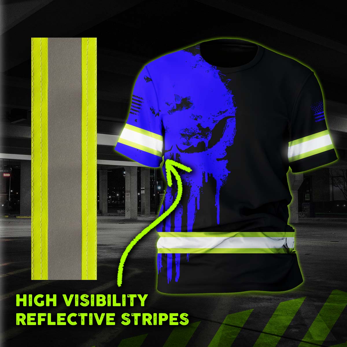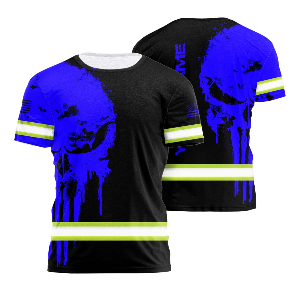 Hi Vis Shirt Reflective Blue Neon Skull US Flag Custom Name Safety