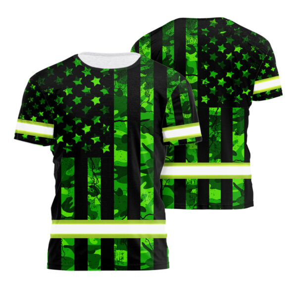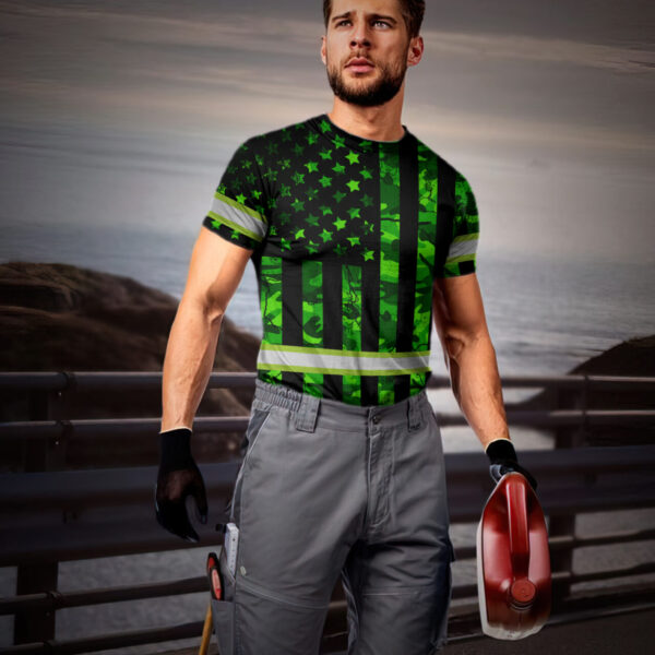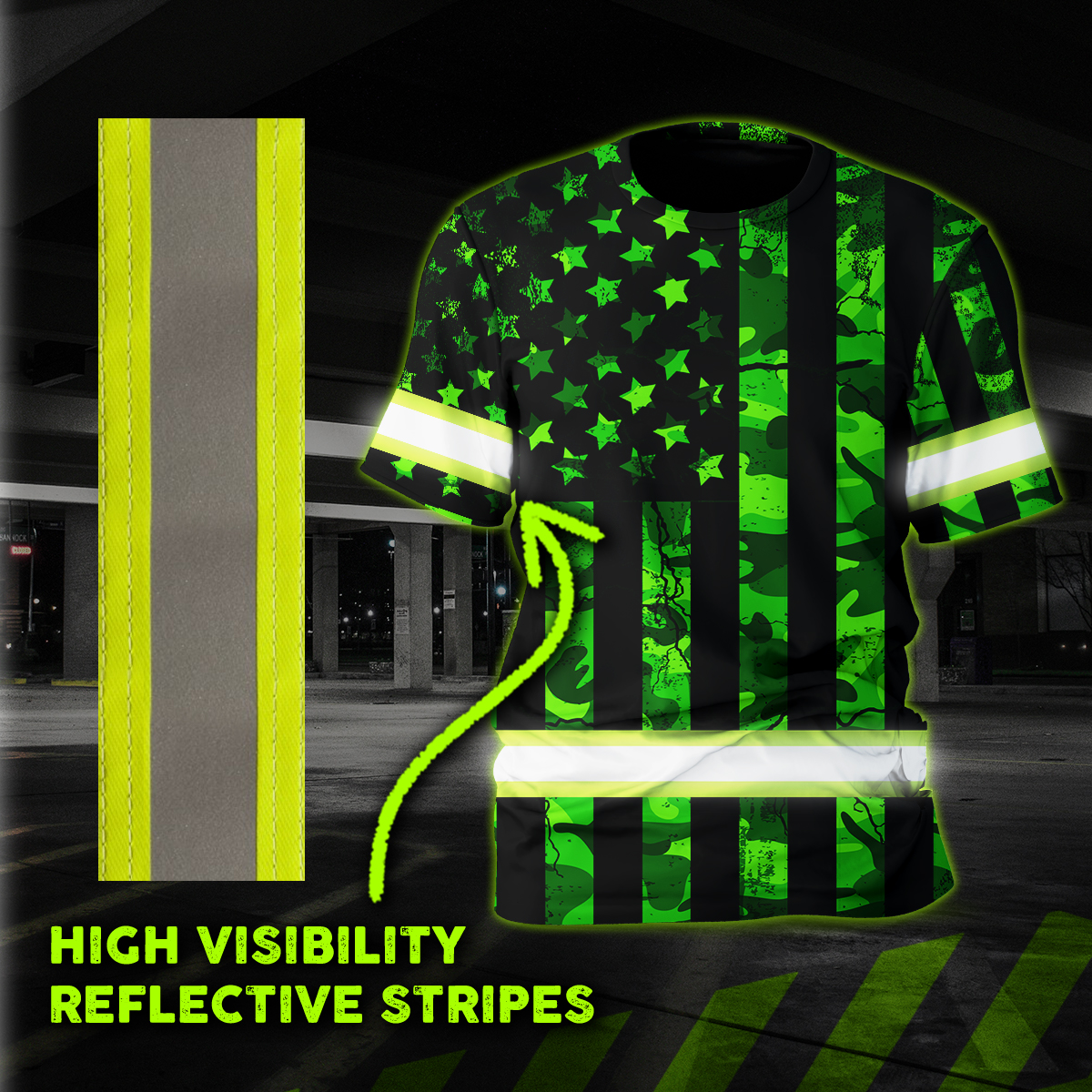 Hi Vis Shirt Reflective Camo Flag Green Neon US Flag Safety Workwear For Workers, Operator, Cyclists, Patriotic