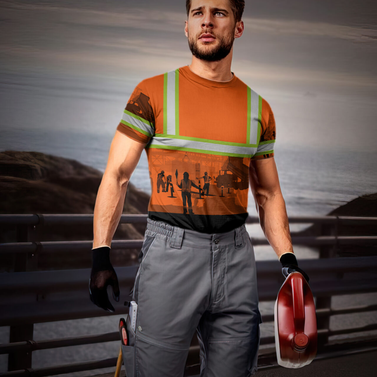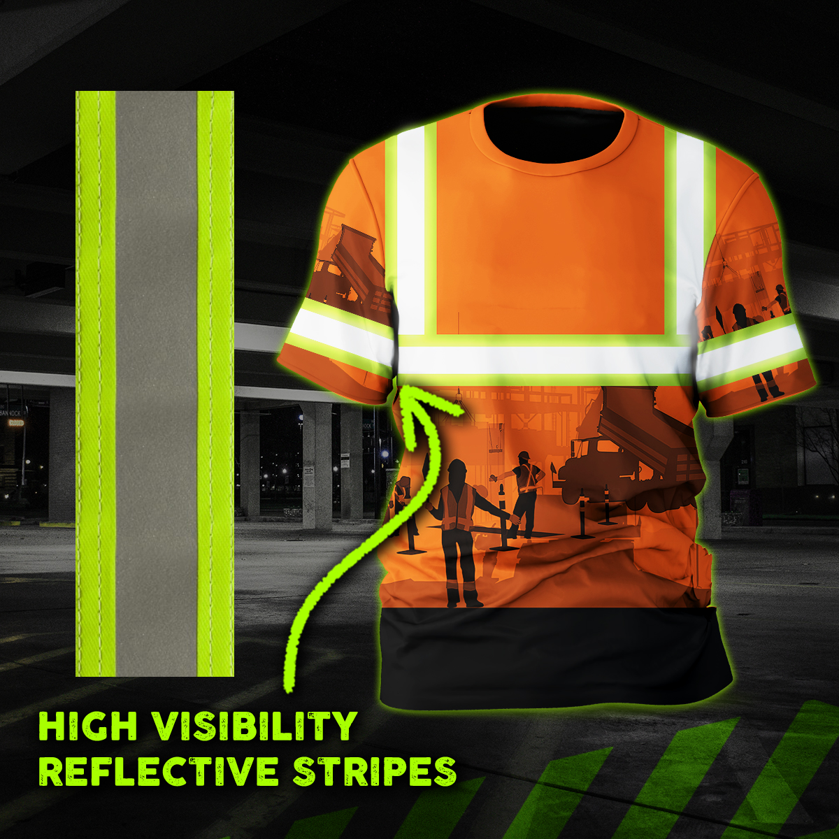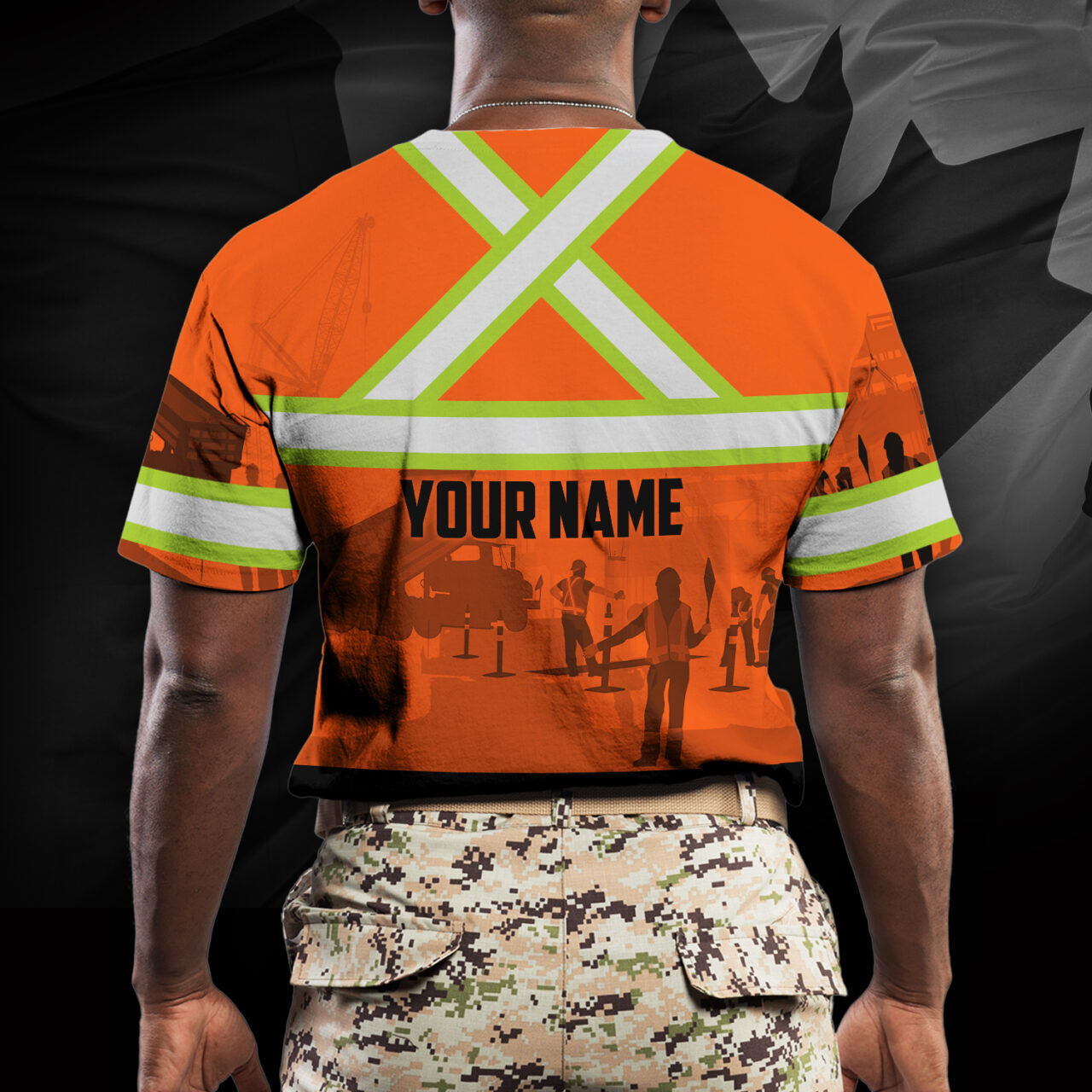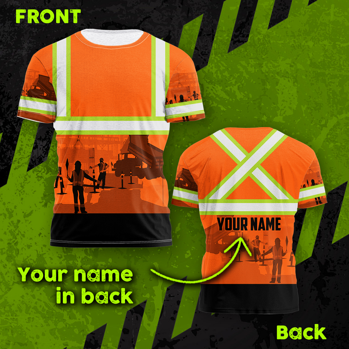 Hi Vis Shirt Reflective Female Flagger Worker Tshirt Custom Name Safety Workwear For Workers, Runners, Cyclists, Patriotic
