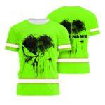 Hi Vis Shirt Reflective Green Neon Paint Plash Skull Custom Name Safety Workwear For Truckers, Workers, Runners, Cyclists, Patriotic