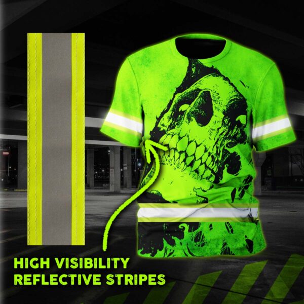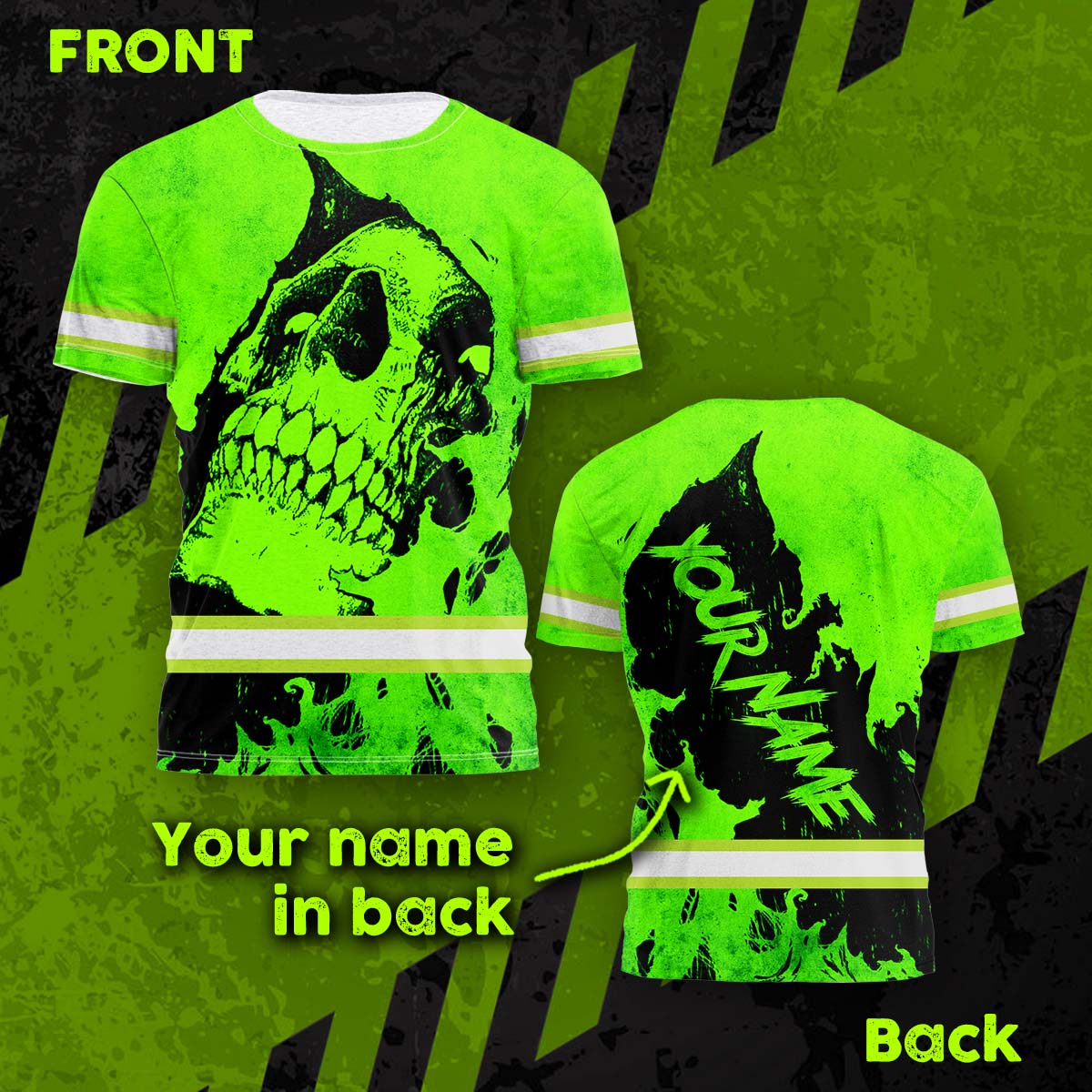 Hi Vis Shirt Reflective Green Neon Ripping Off Skull Custom Name quantity