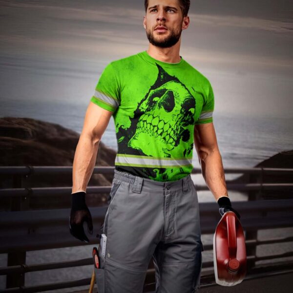 Hi Vis Shirt Reflective Green Neon Ripping Off Skull Custom Name