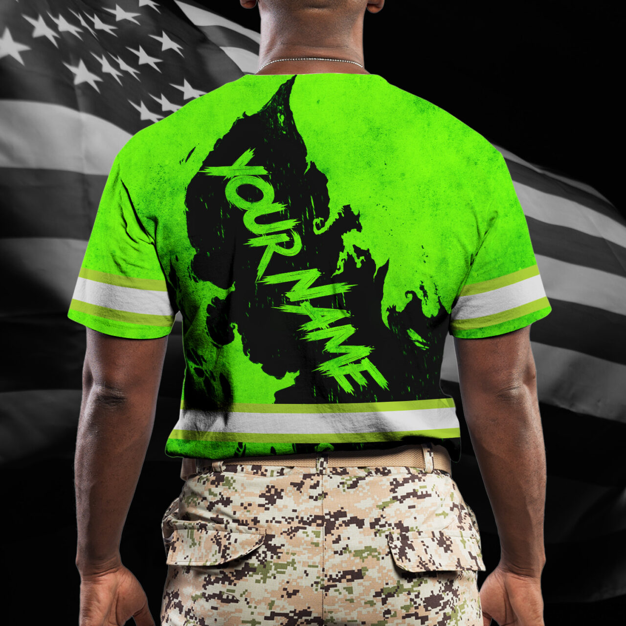 Be the first to review “Hi Vis Shirt Reflective Green Neon Ripping Off Skull Custom Name”