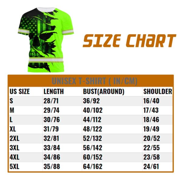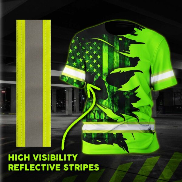 Hi Vis Shirt Reflective Green Neon Skull US Flag Scratch Custom Name Safety Workwear For Workers, Runners, Cyclists, Trucker, Operator, Patriotic quantity