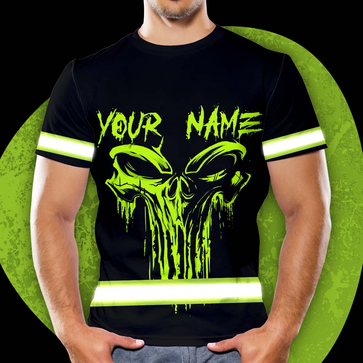 Hi Vis Shirt Reflective Green Skull Custom Name Safety Workwear