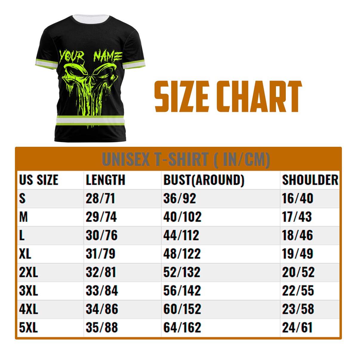 Hi Vis Shirt Reflective Green Skull Custom Name Safety Workwear For Workers, Runners, Cyclists, Patriotic, Veteran, Military Key Features