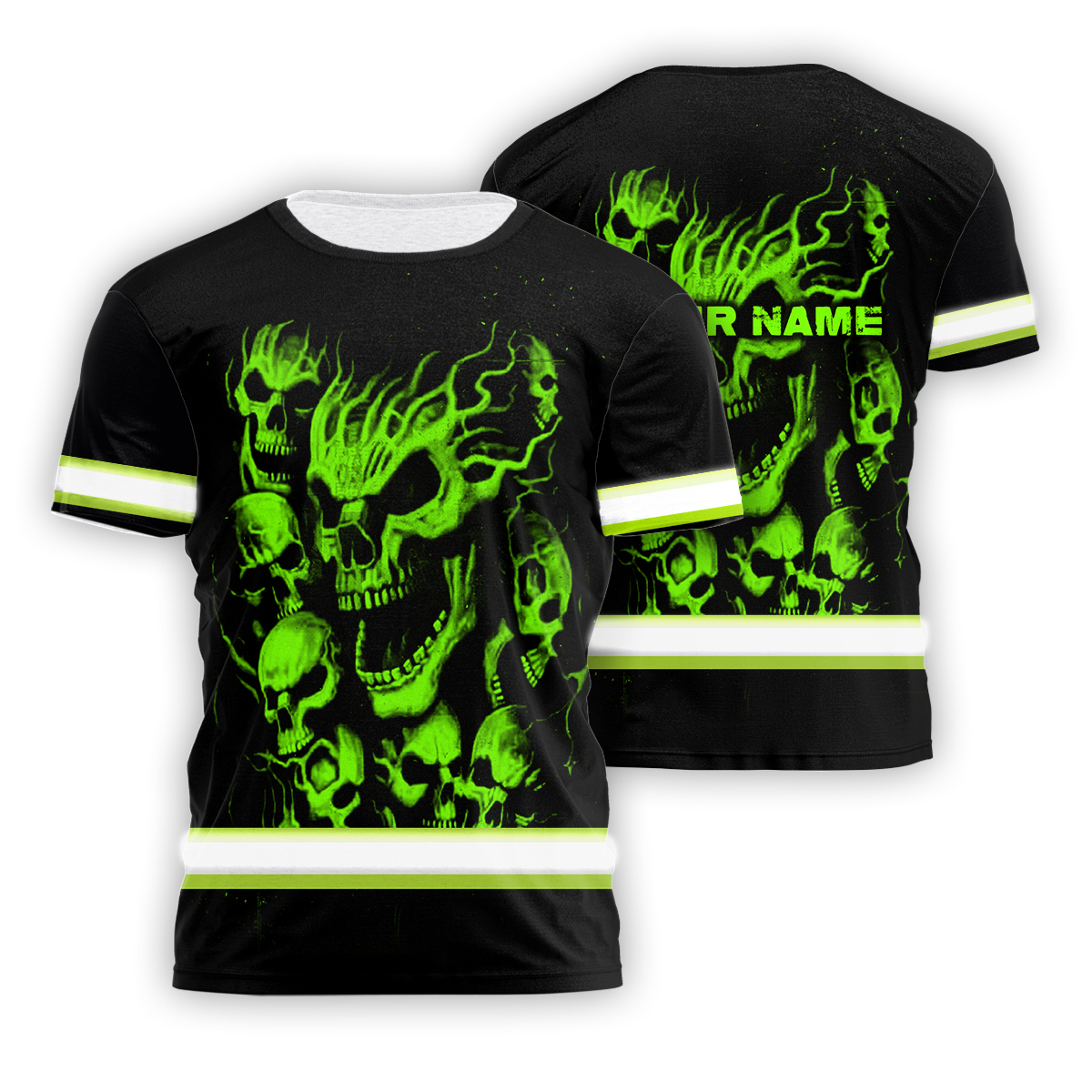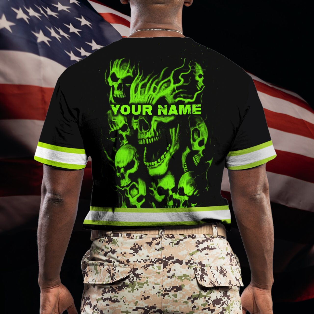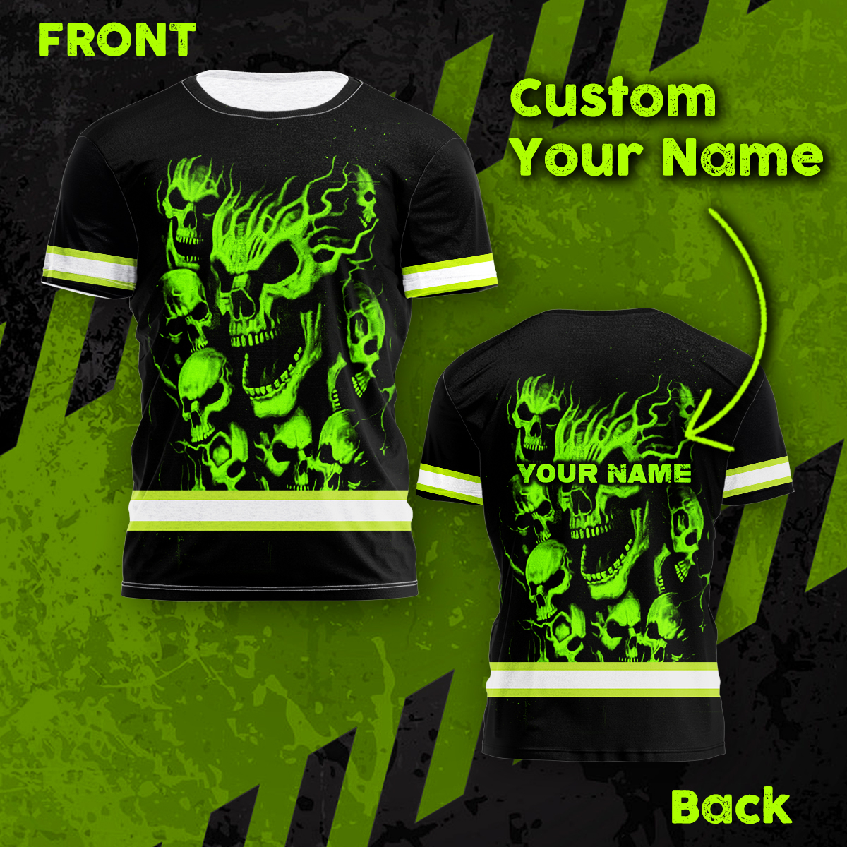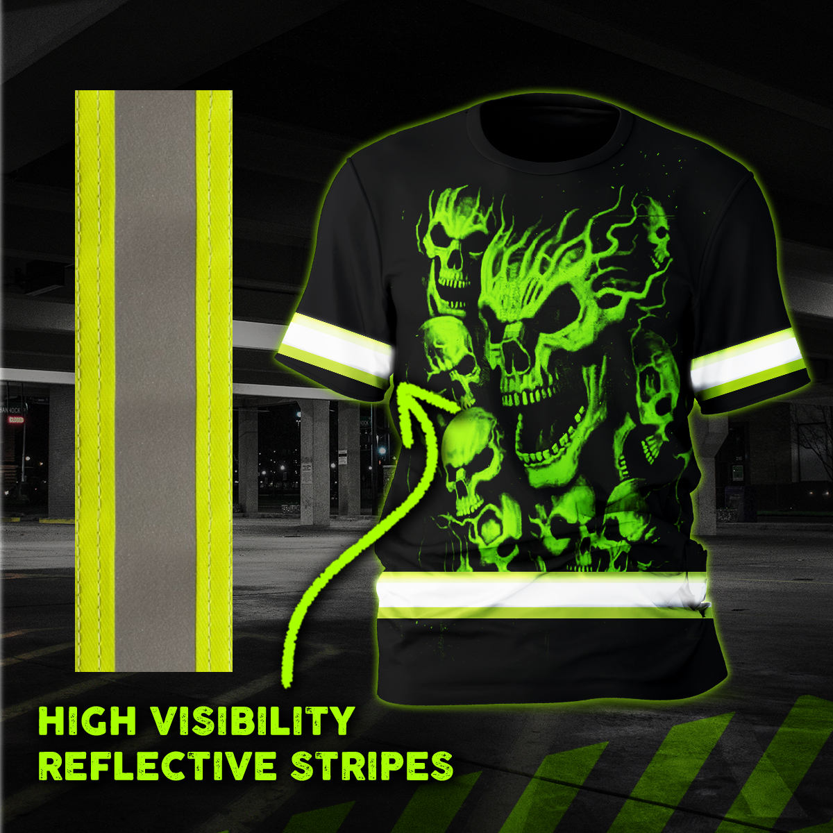 Hi Vis Shirt Reflective Green Skull Fly Safety Workwear For Workers, Runners, Cyclists, Trucker, Operator, Patriotic