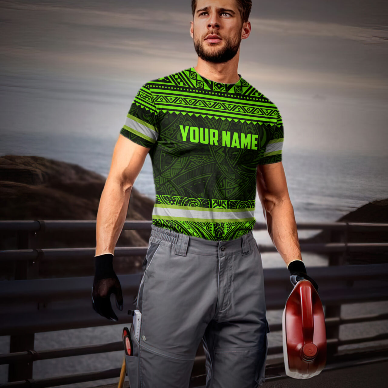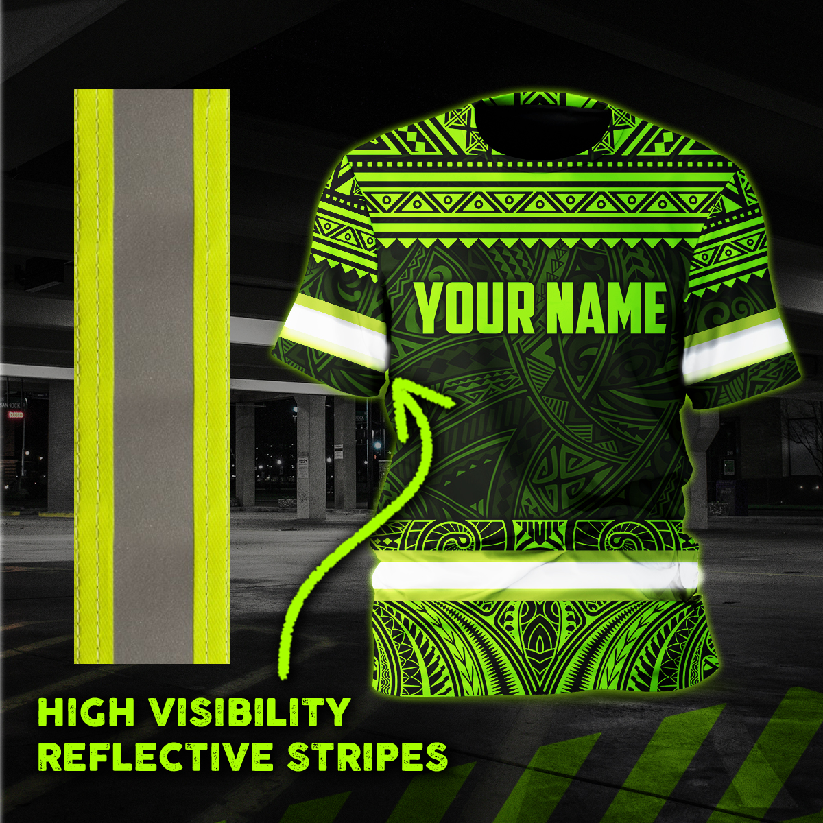 Hi Vis Shirt Reflective Hawaii Warrior Tribal Polynesian Custom Name Safety Workwear For Workers, Runners, Cyclists, Truckers