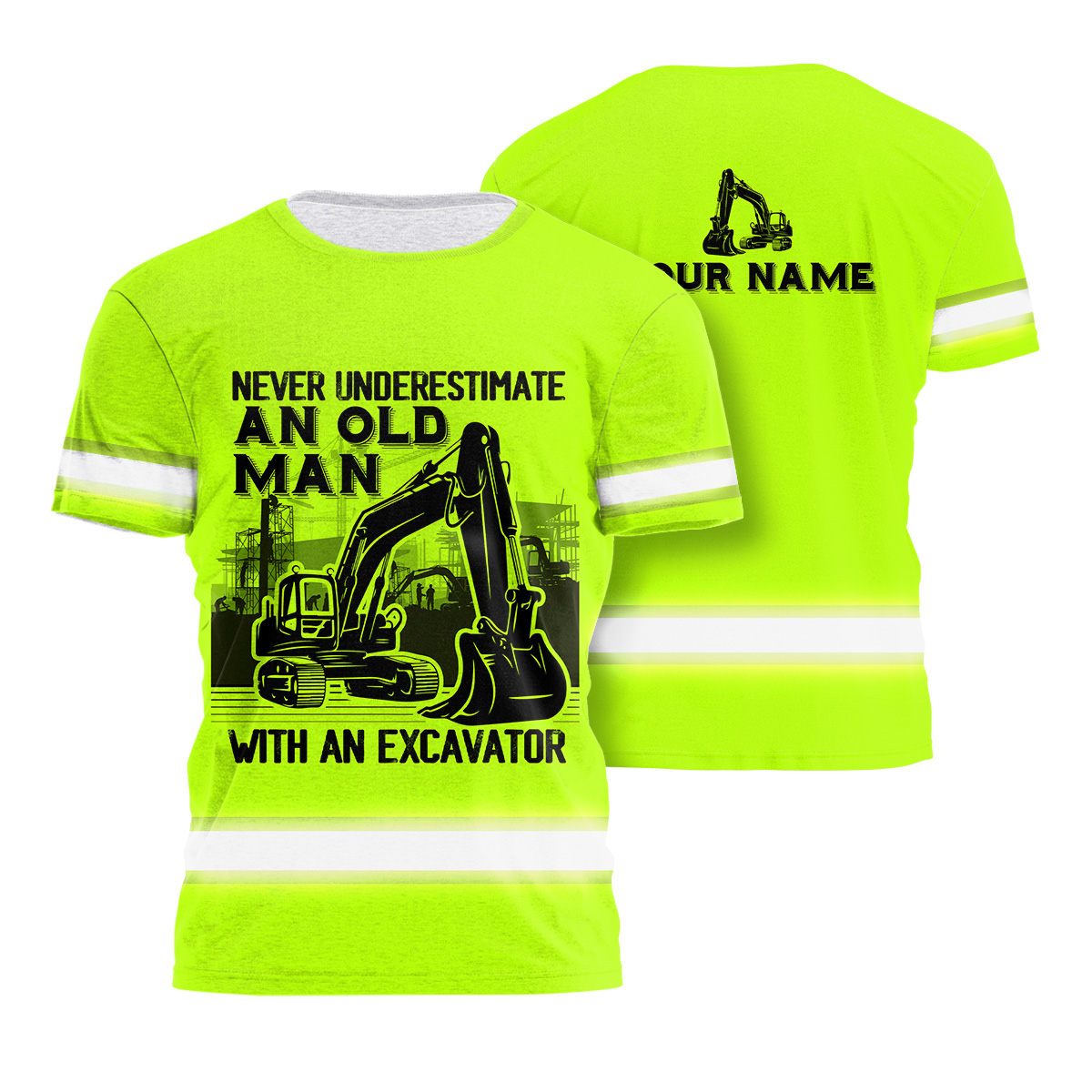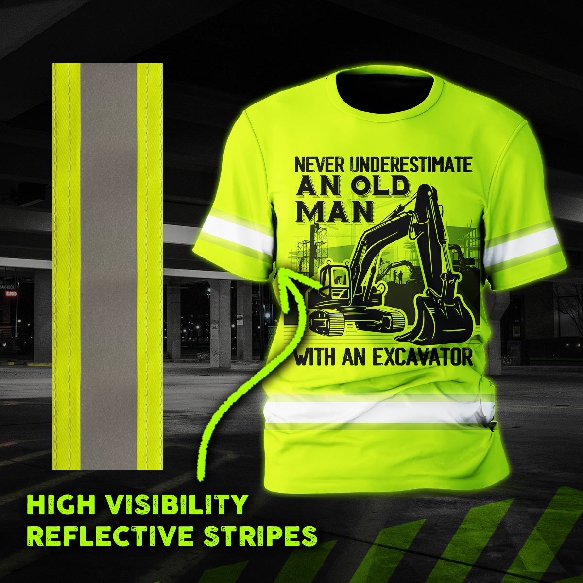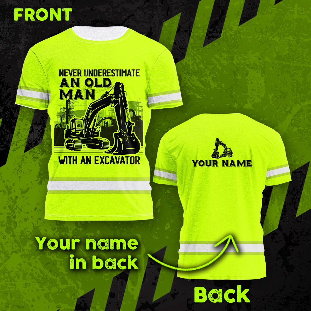 Hi Vis Shirt Reflective Old Man With An Excavator Custom Name Safety Workwear For Workers, Operator, Cyclists, Patriotic