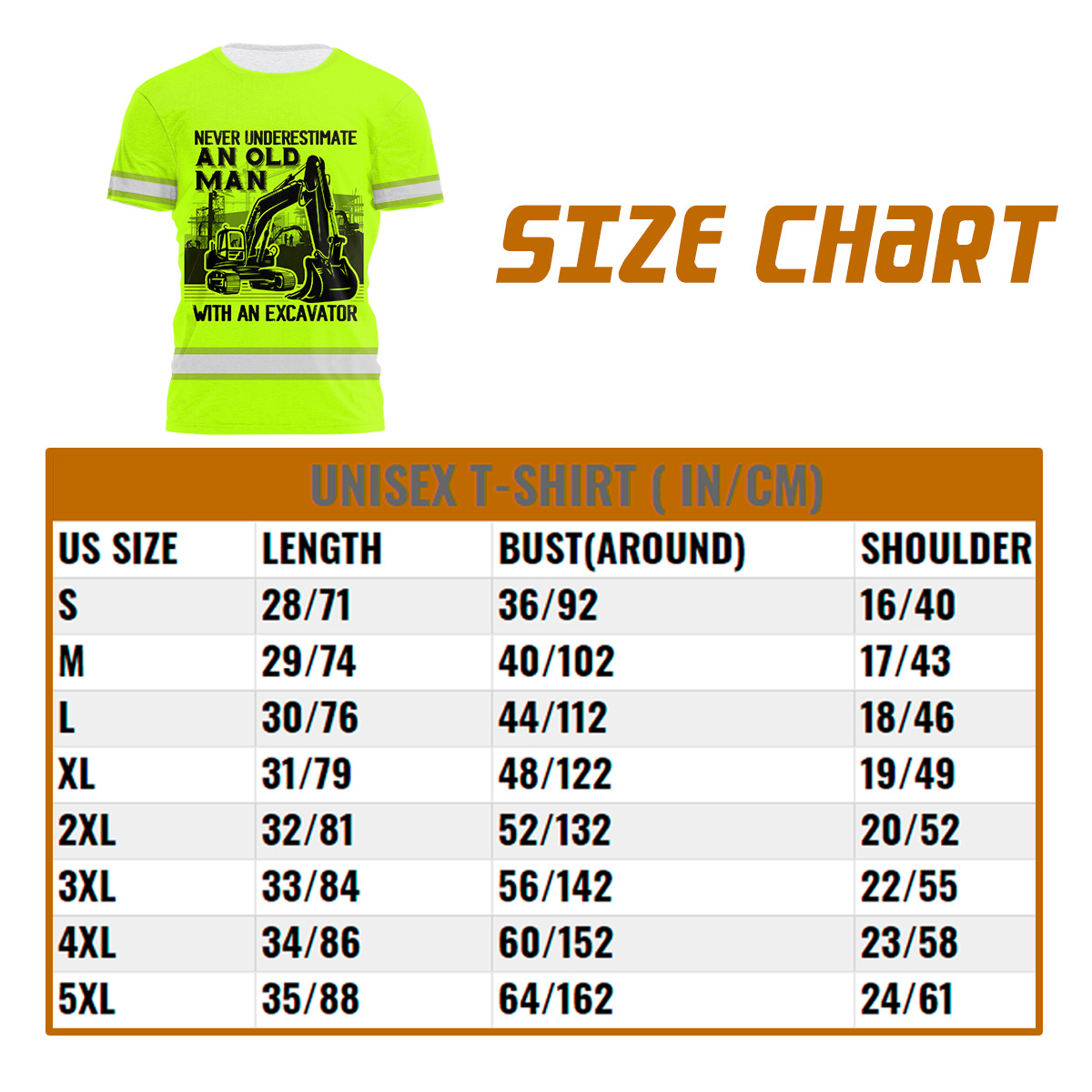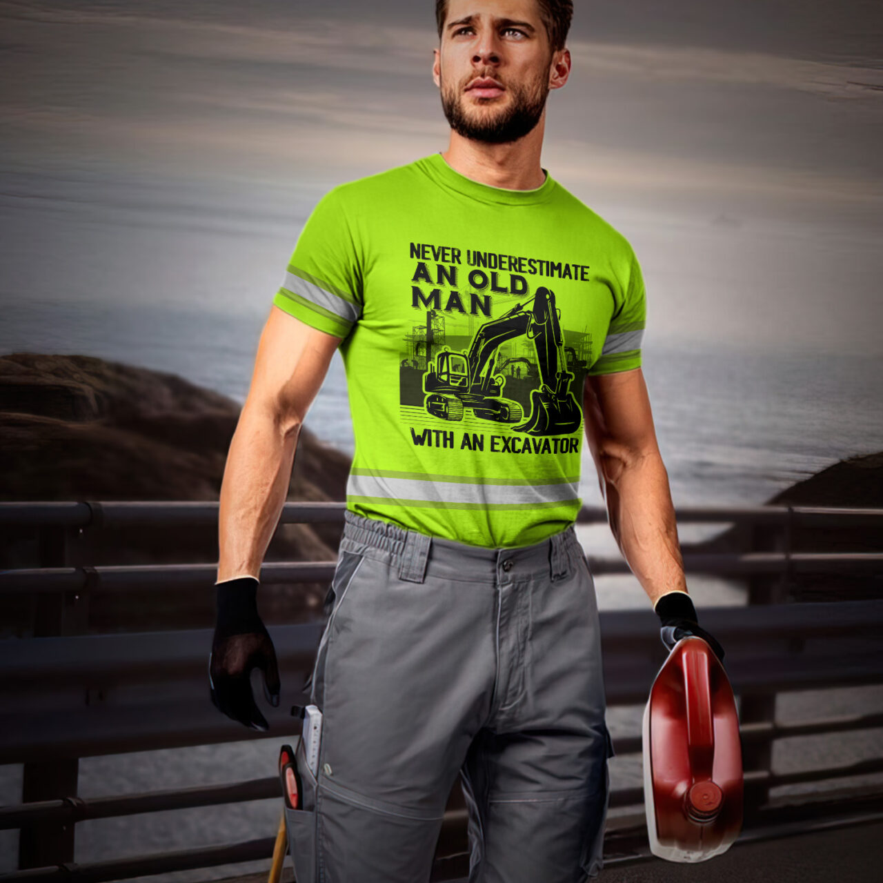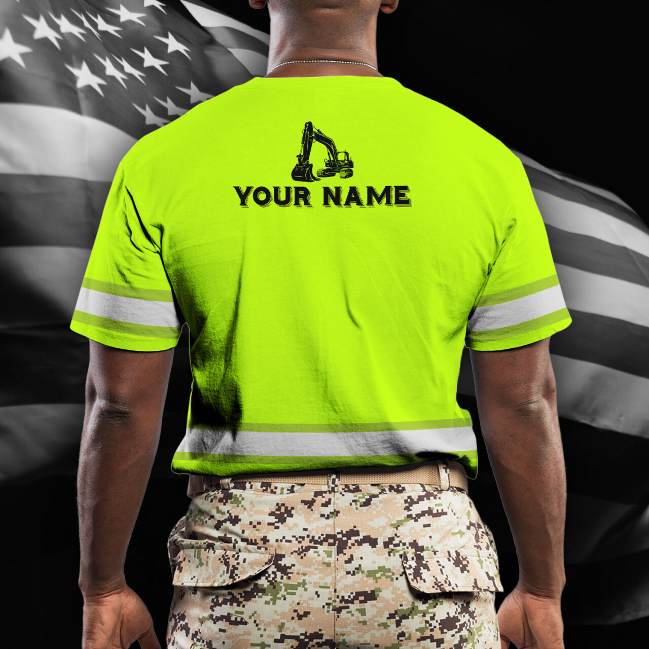 Hi Vis Shirt Reflective Old Man With An Excavator Custom Name Safety Workwear For Workers, Operator, Cyclists, Patriotic