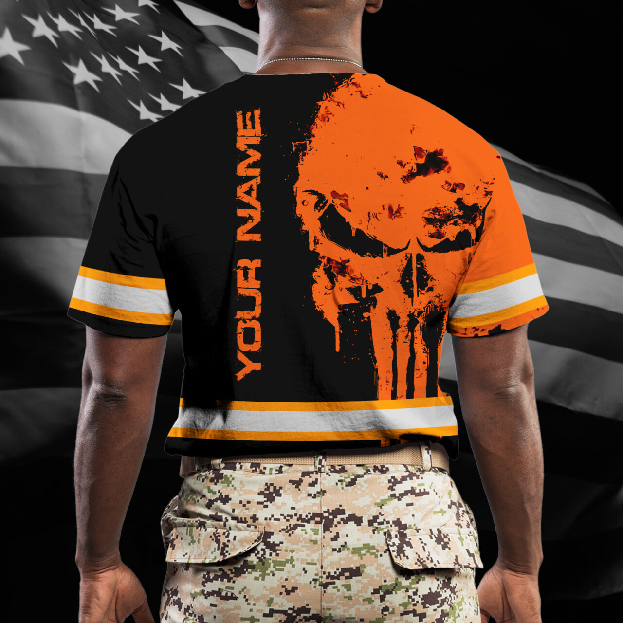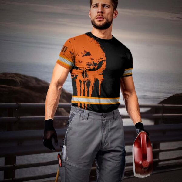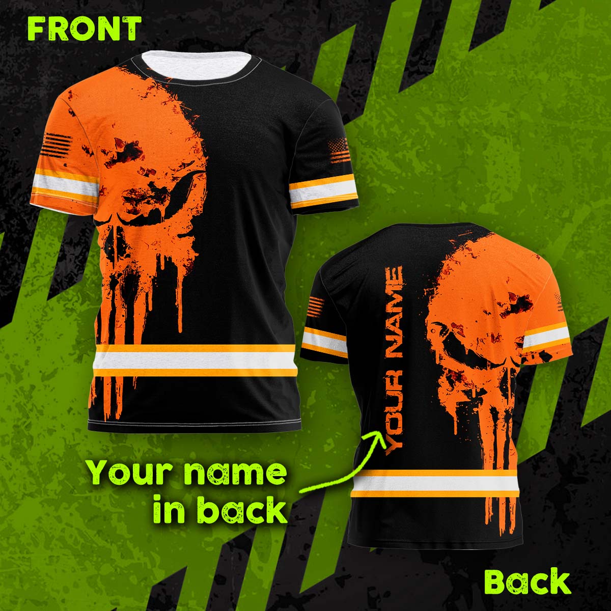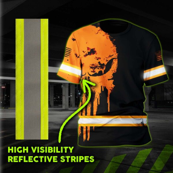Hi Vis Shirt Reflective Orange Neon Skull US Flag Custom Name Safety Workwear