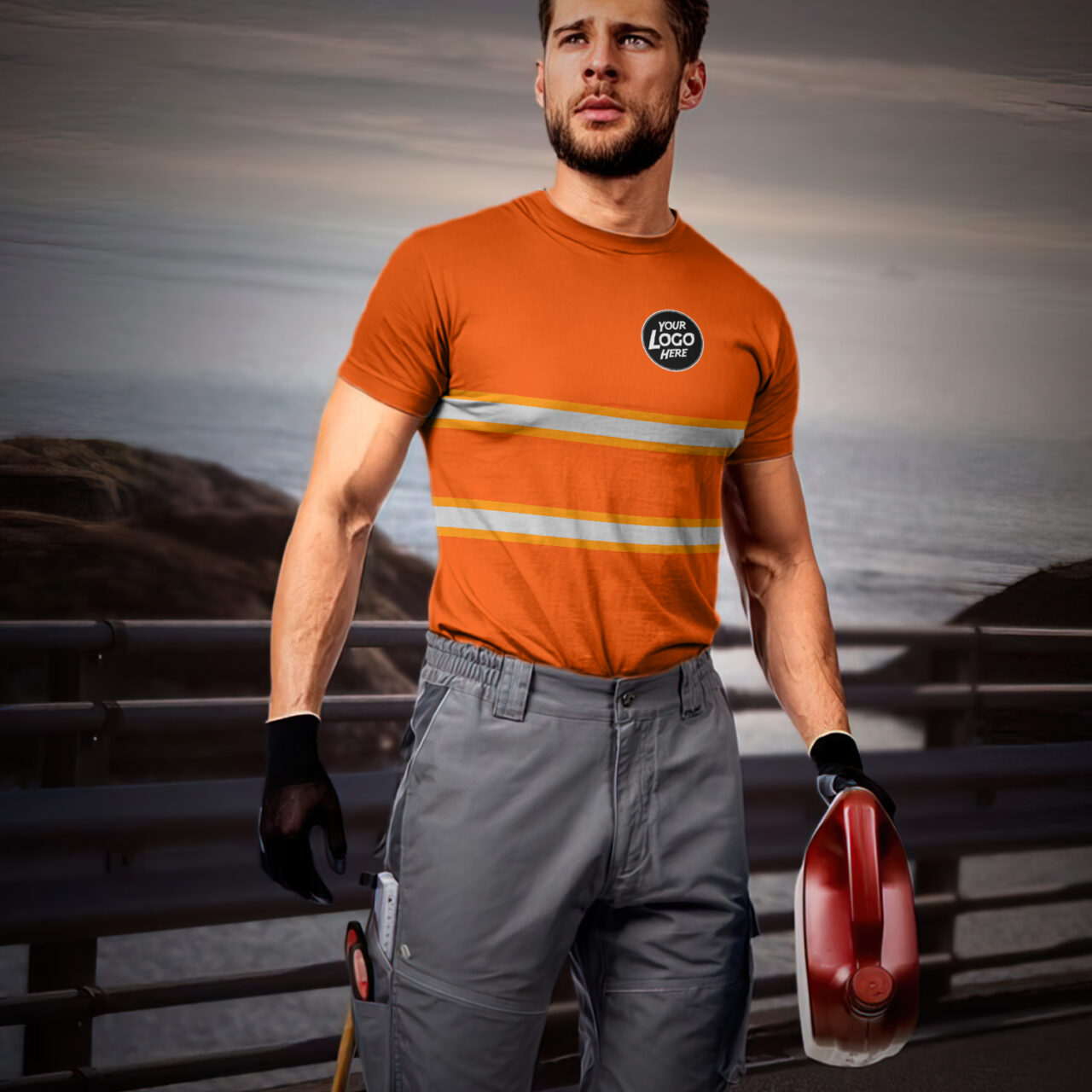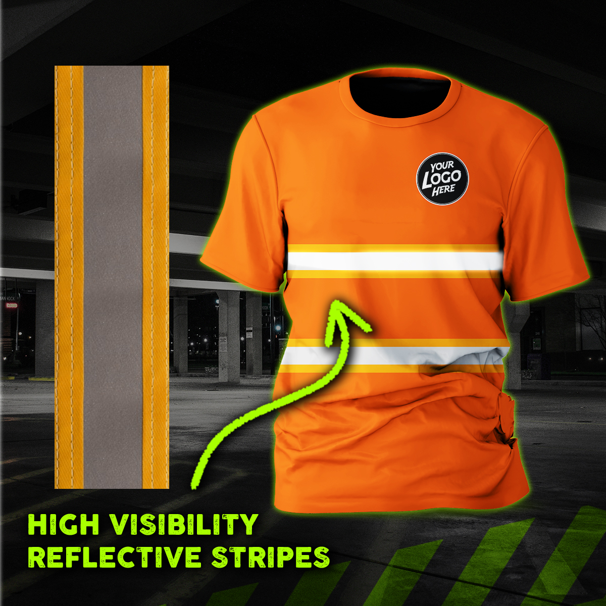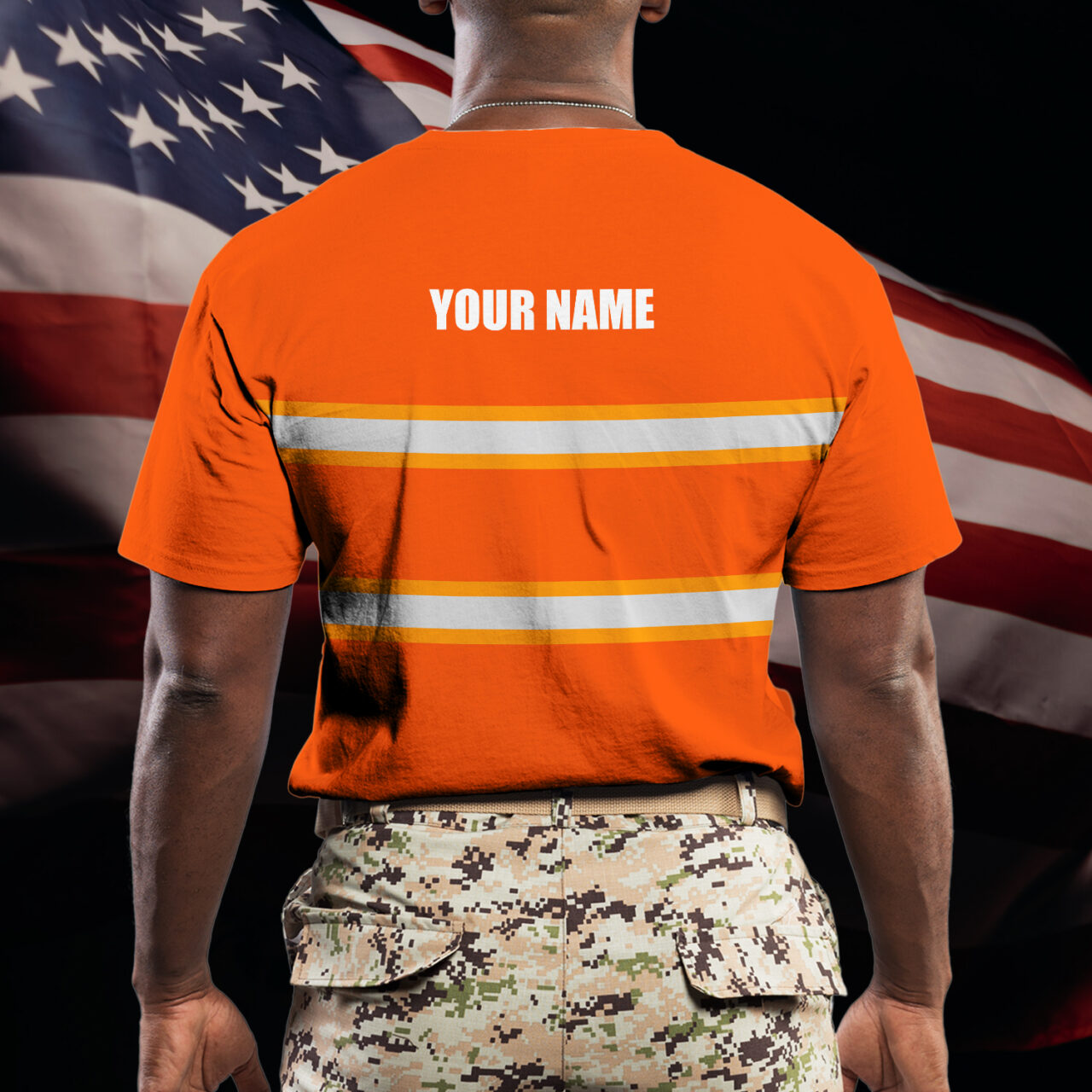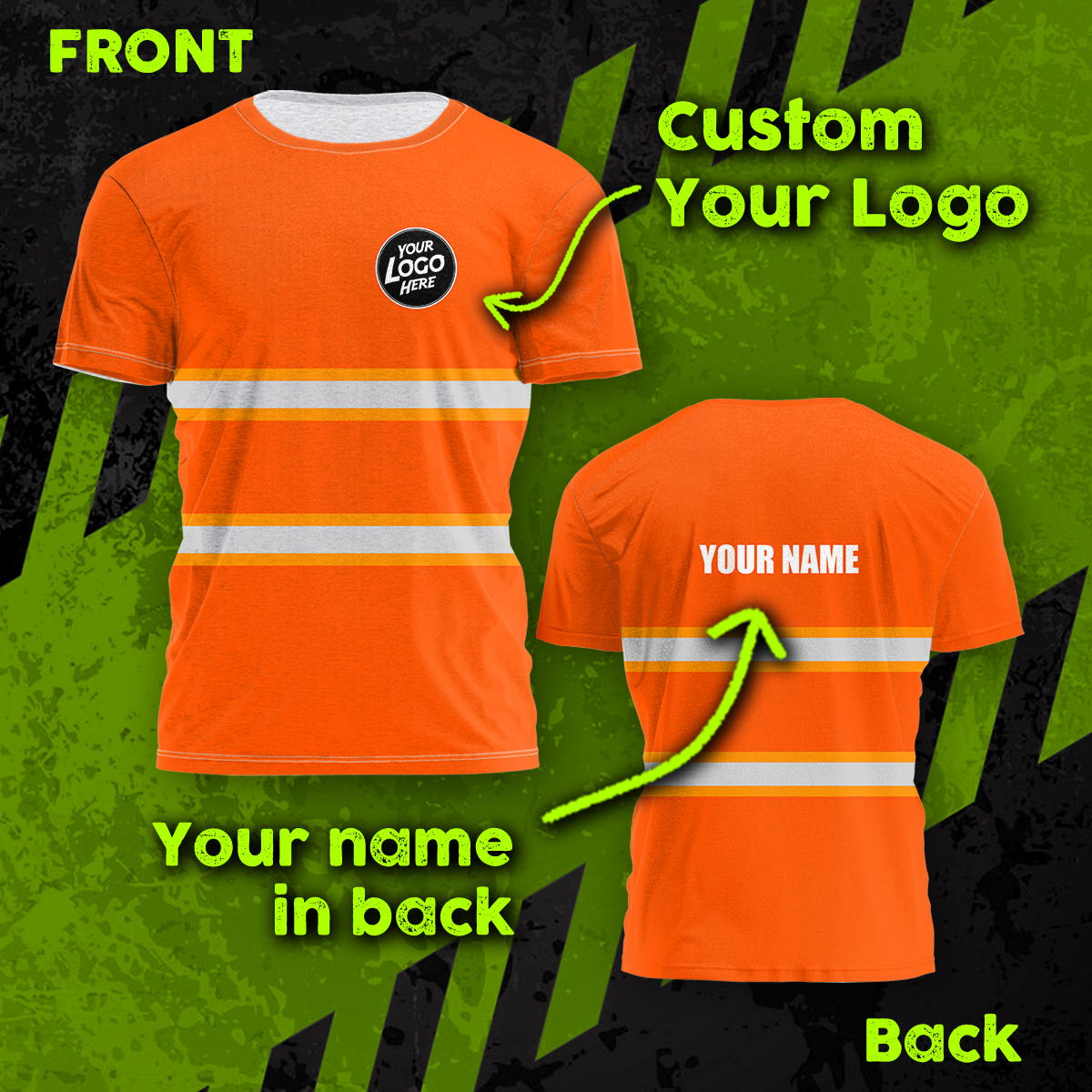 Hi Vis Shirt Reflective Orange Orange Line Custom Logo And Name Safety Workwear For Workers, Runners, Cyclists, Trucker, Operator, Patriotic