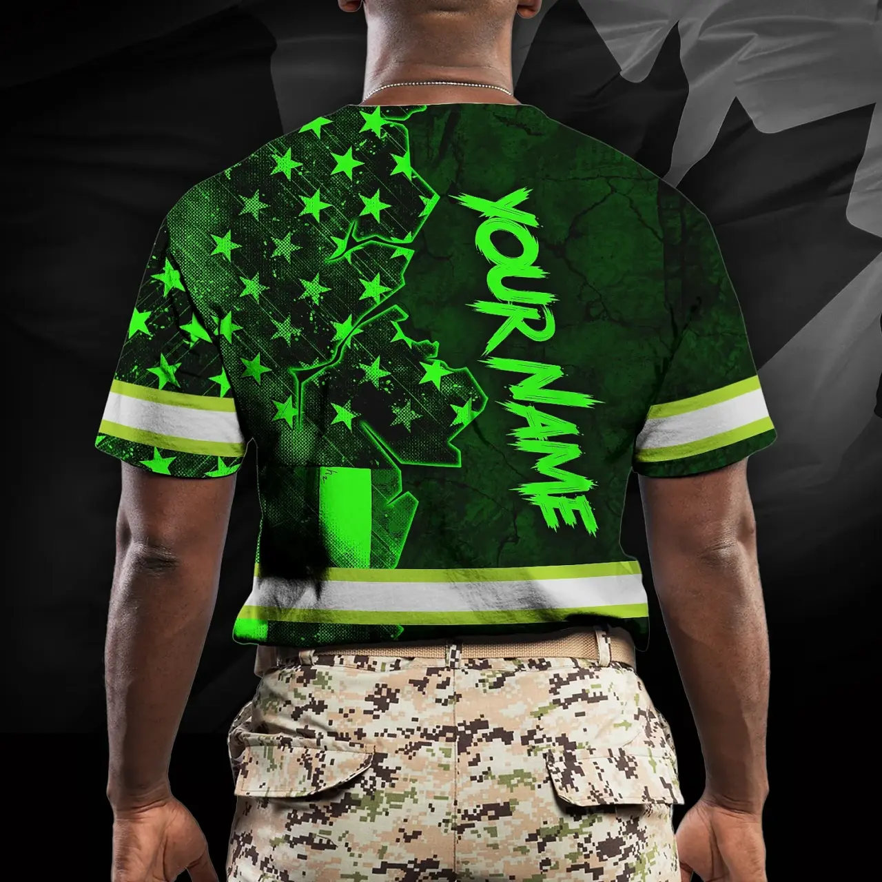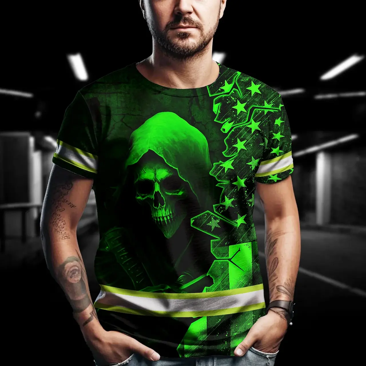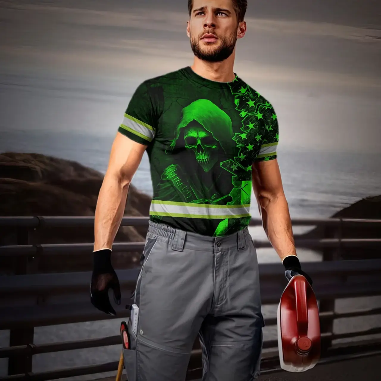Hi Vis Shirt Reflective Skull America Flag Custom Name Safety Workwear For Workers, Truckers, Operators