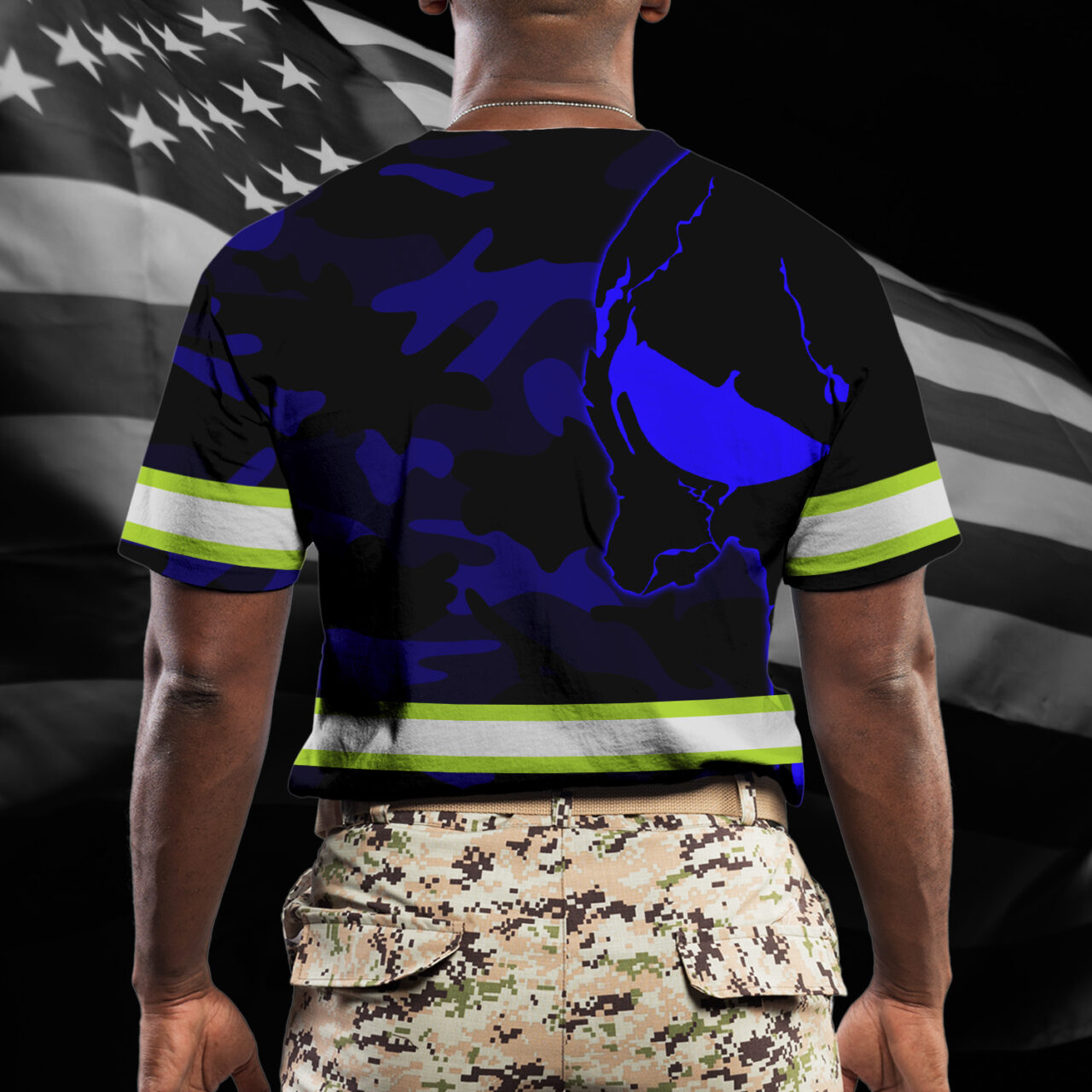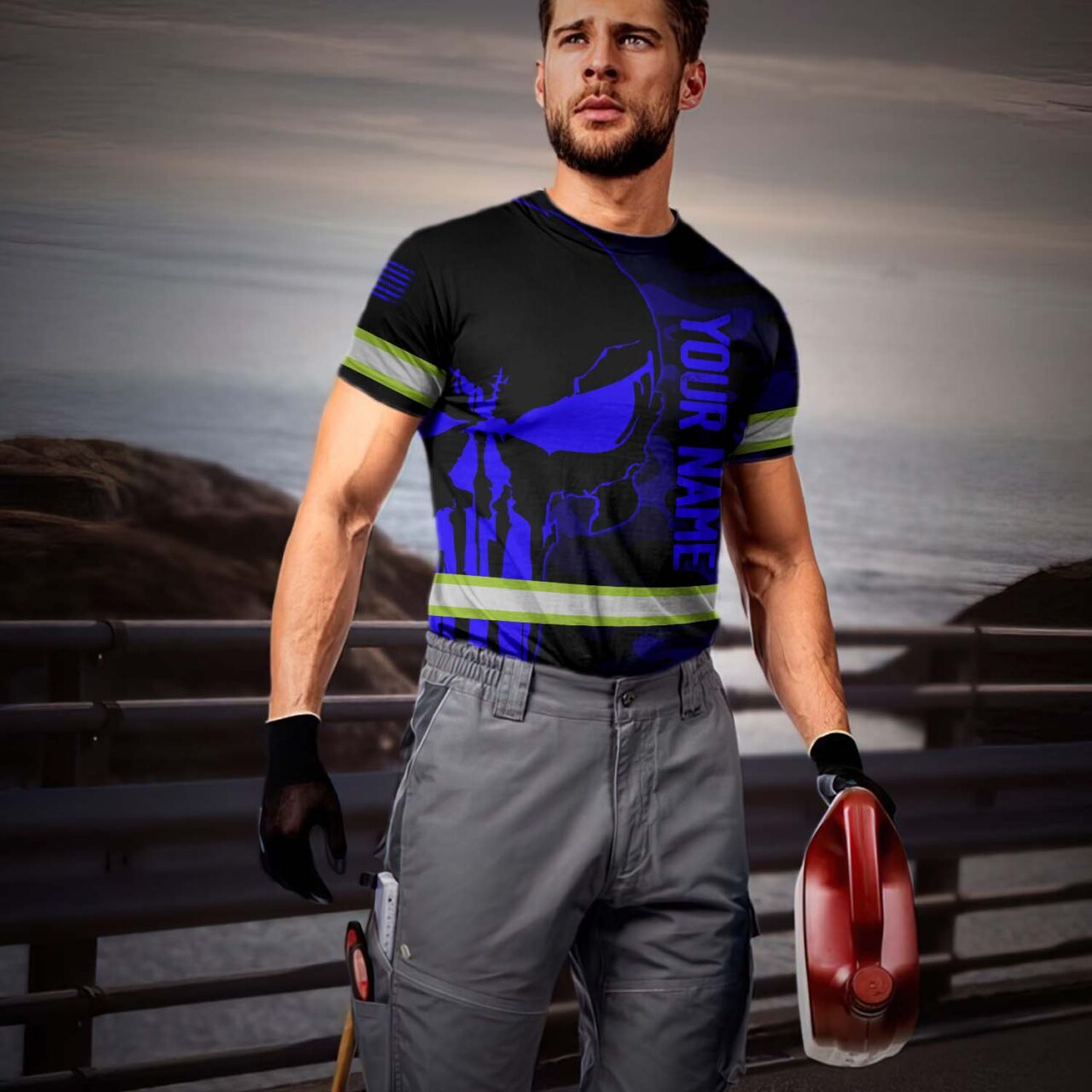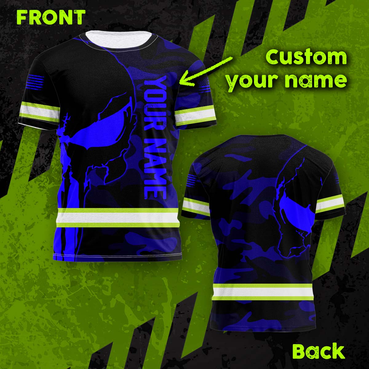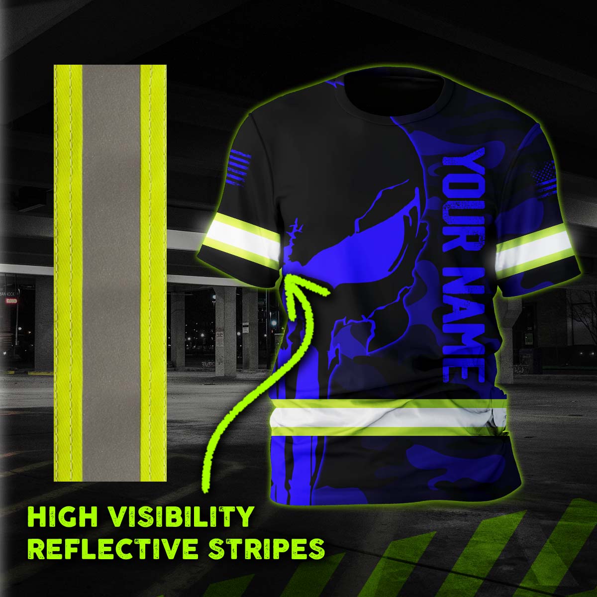 Hi Vis Shirt Reflective Skull Camo Blue Neon US Flag Custom Name Safety Workwear