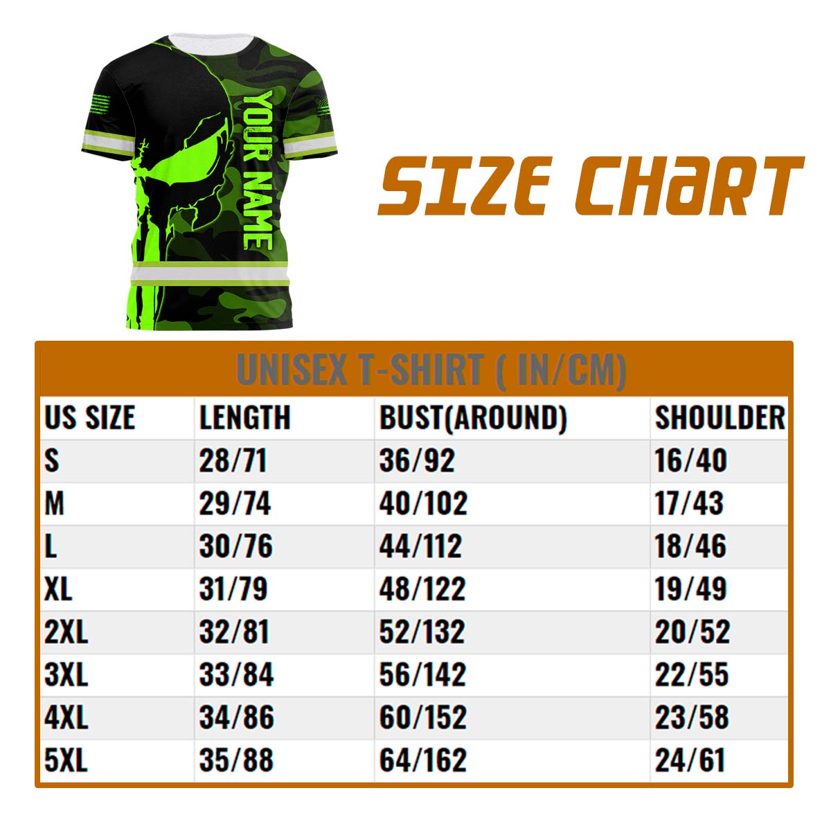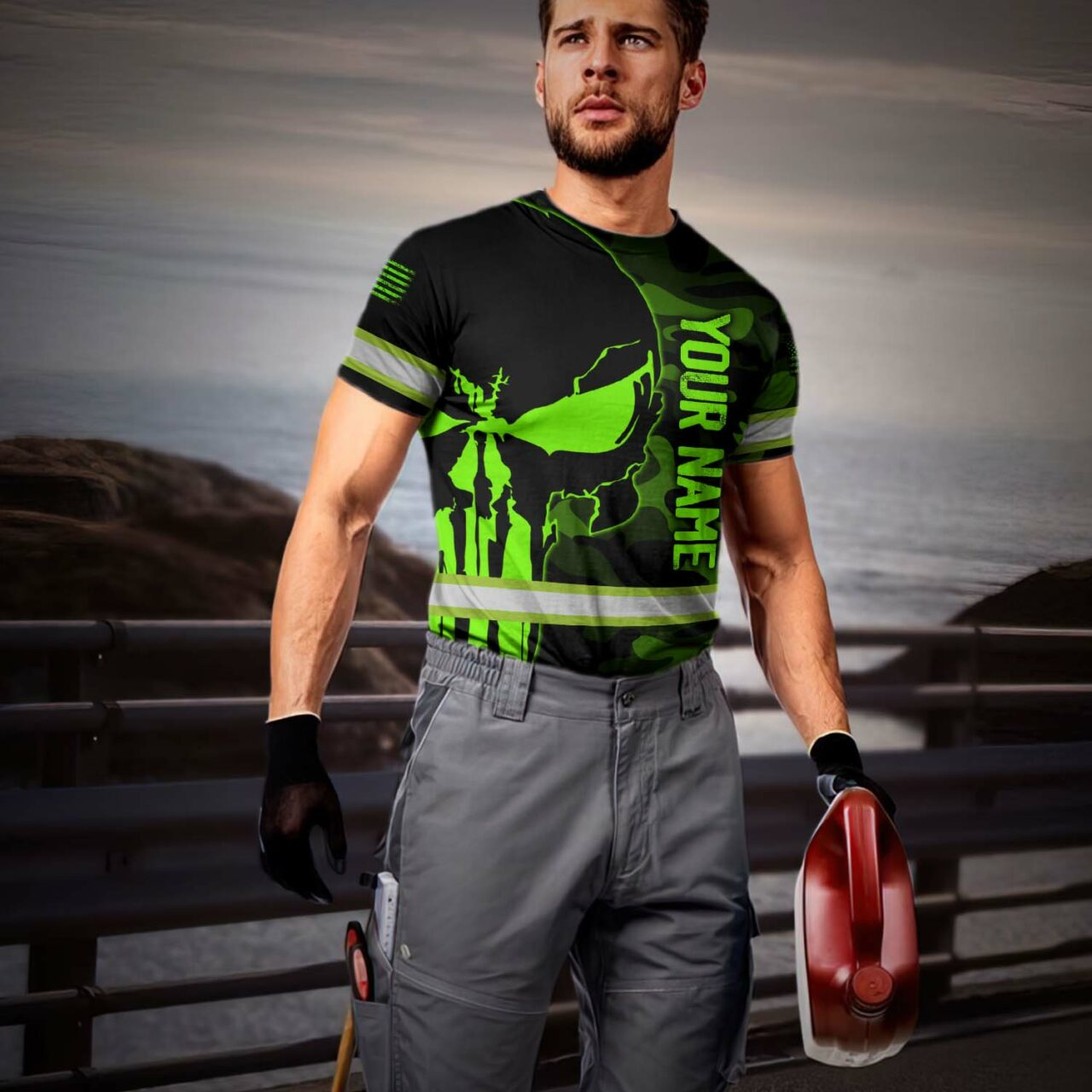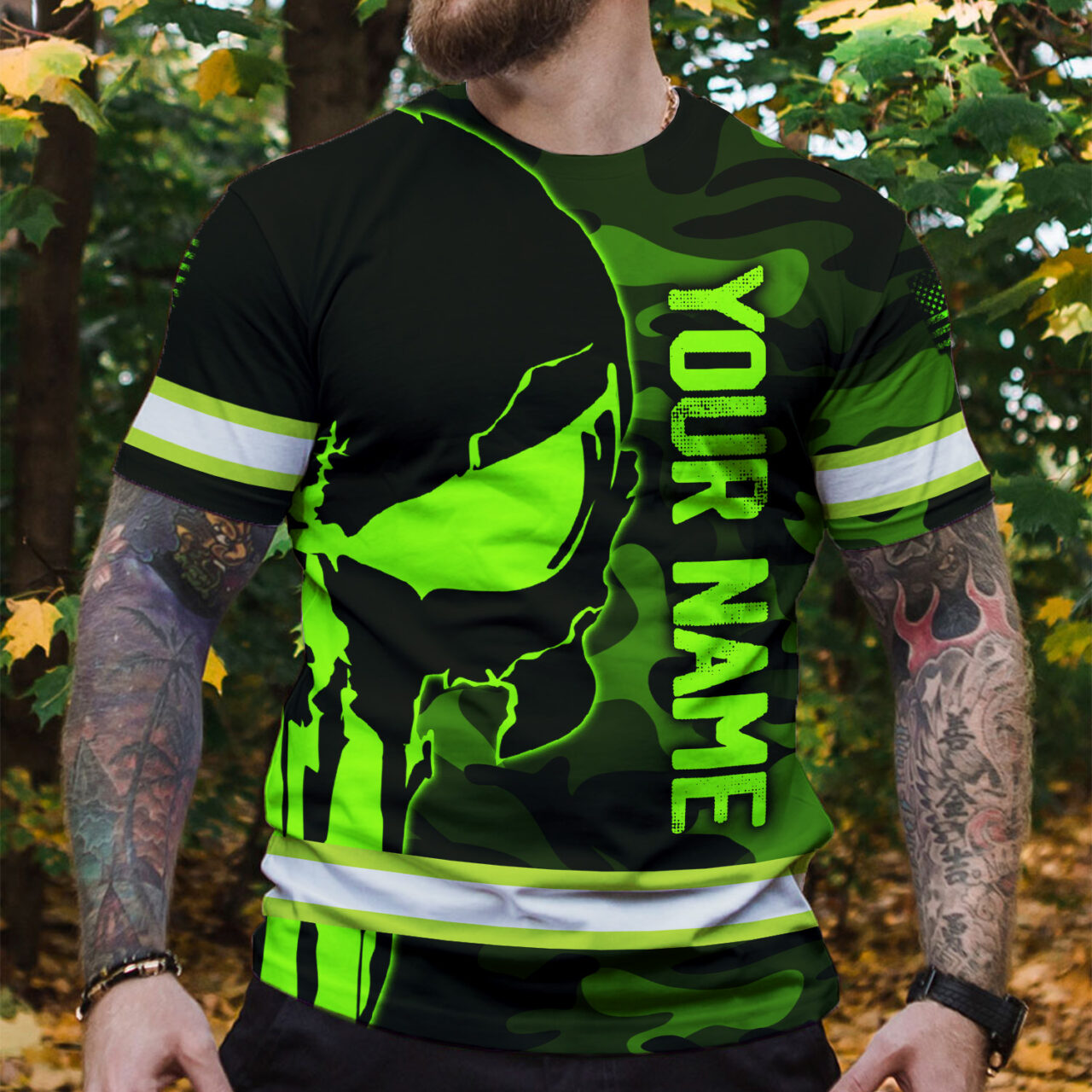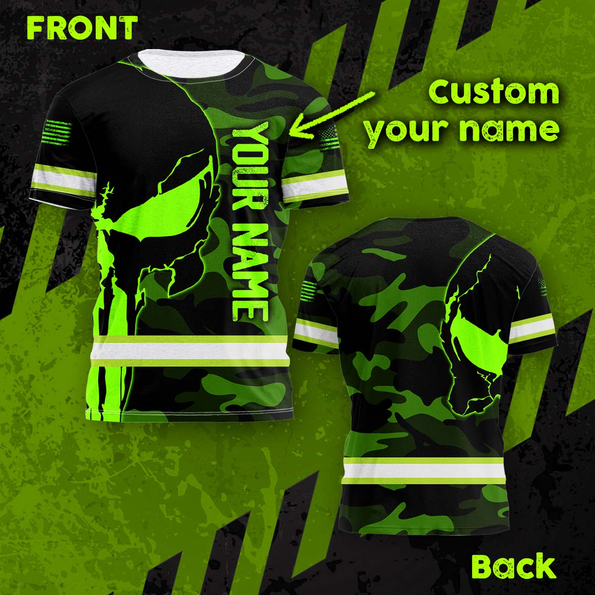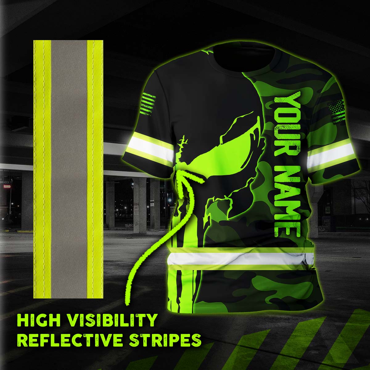 Hi Vis Shirt Reflective Skull Camo Green Neon US Flag Custom Name Safety Workwear