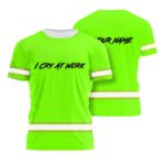Hi Vis Shirt Reflective Tapes Green Neon I Cry At Work Custom Name Safety Workwear For Workers, Operator, Cyclists, Patriotic
