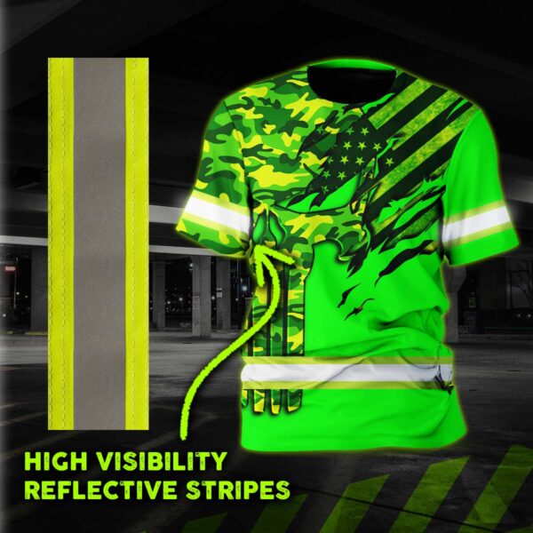 Hi Vis Shirt Reflective Skull Camo Green Neon US Flag Scratch Custom Name Safety Workwear For Workers, Operator, Cyclists, Patriotic quantity