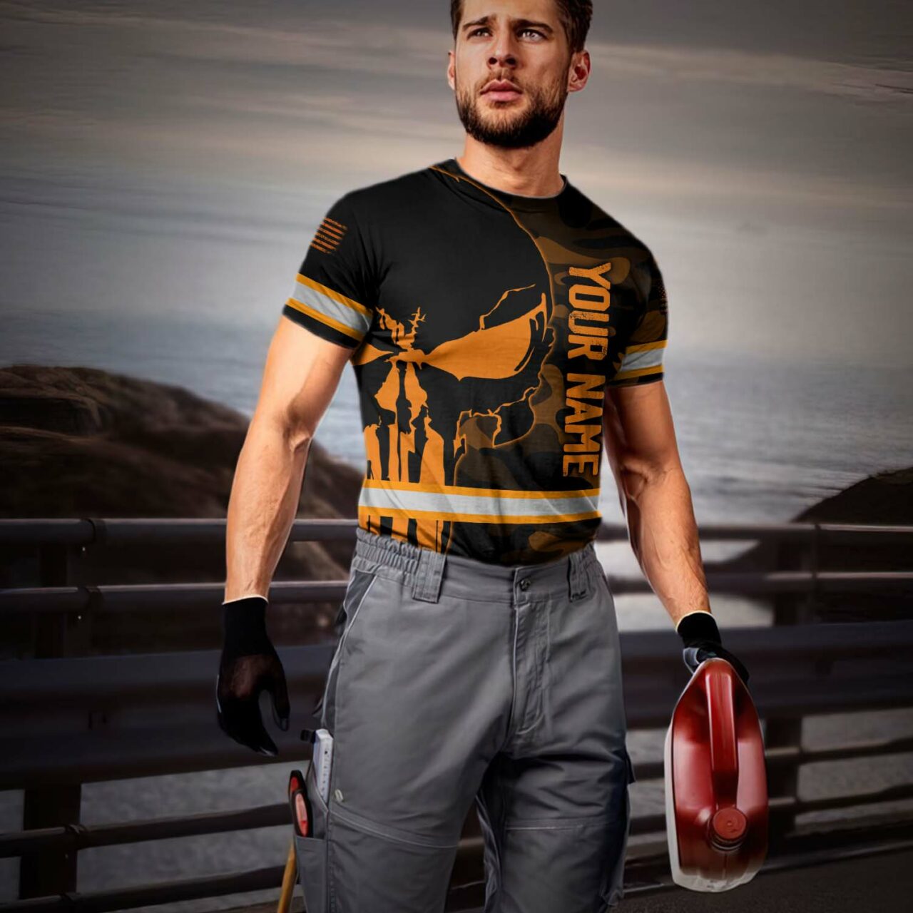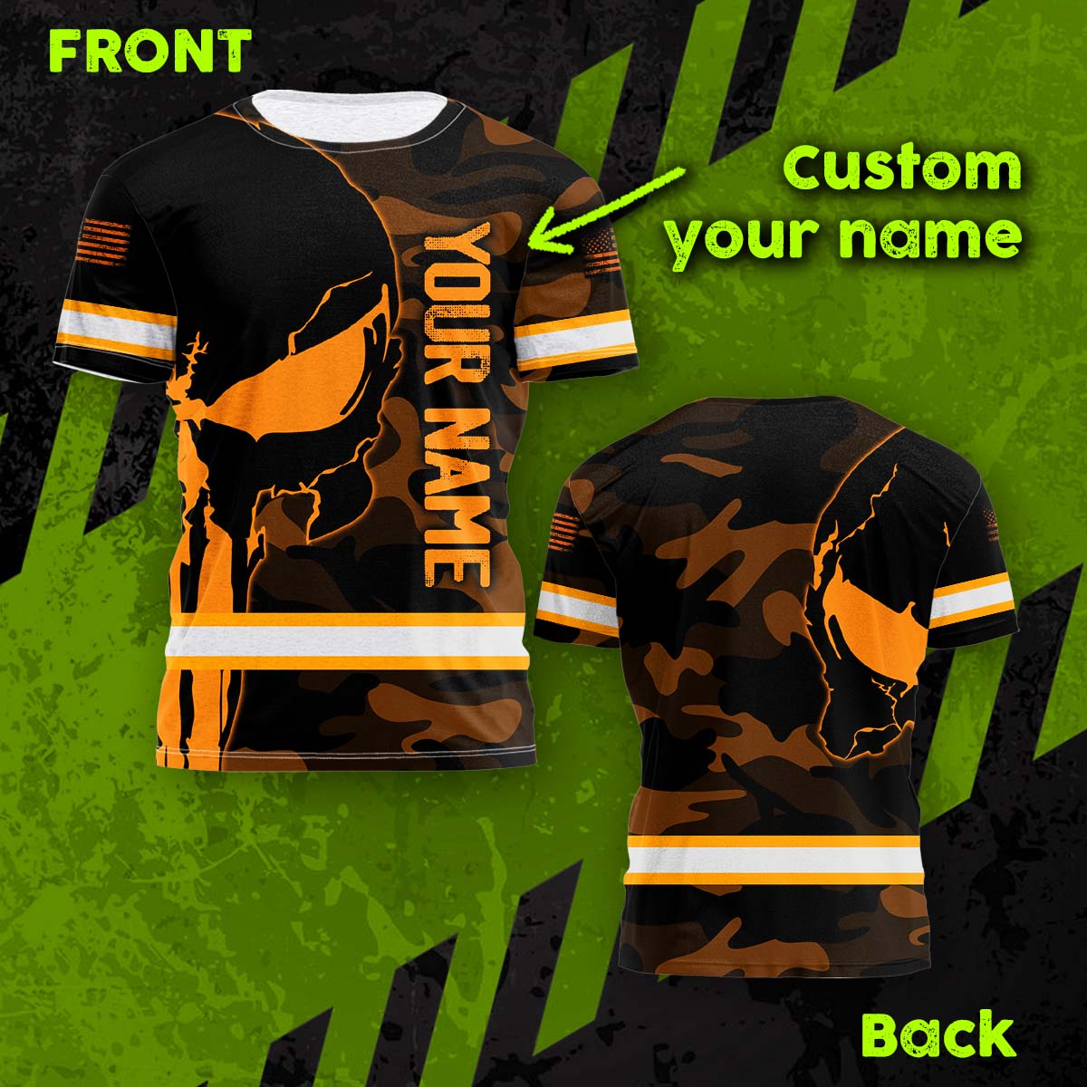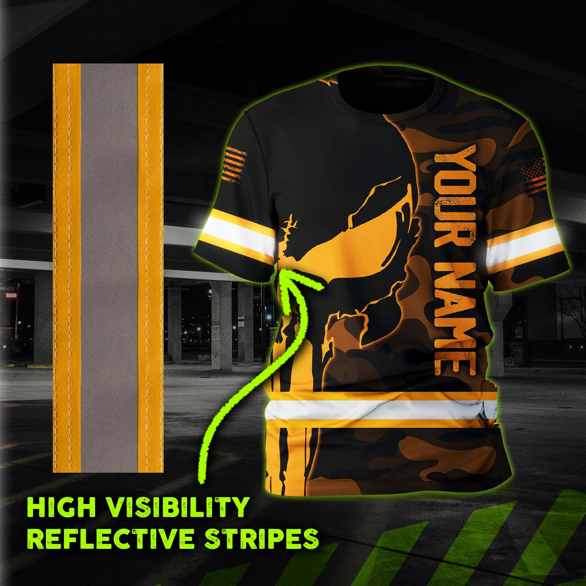 Hi Vis Shirt Reflective Skull Camo Orange Neon US Flag Custom Name Safety Workwear