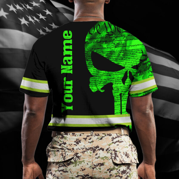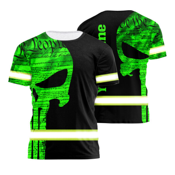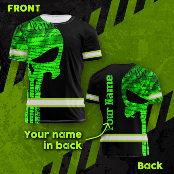 Hi Vis Shirt Reflective Skull Green Neon US Flag Custom Name Safety Workwear For Workers, Runners, Cyclists, Trucker, Operator, Patriotic quantity