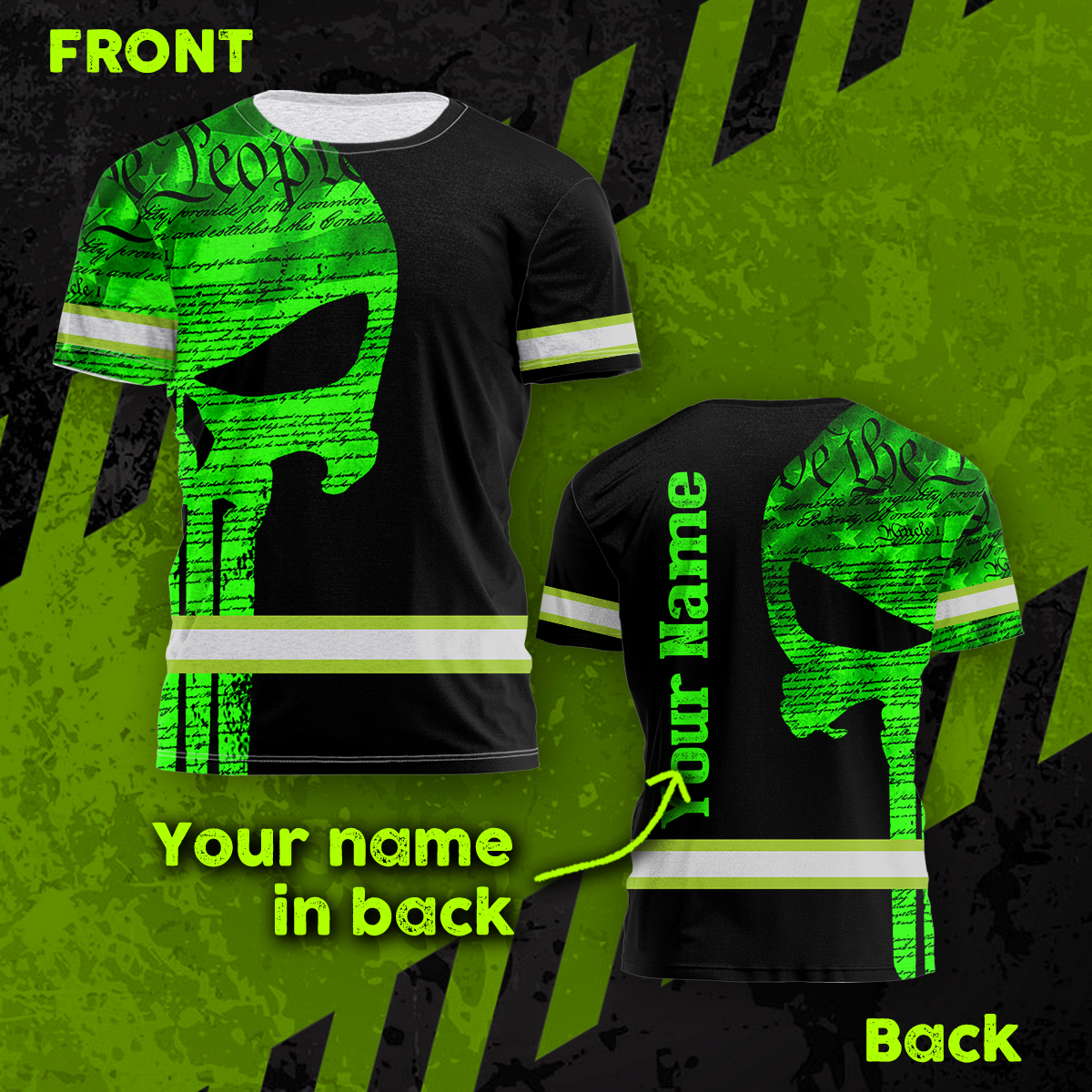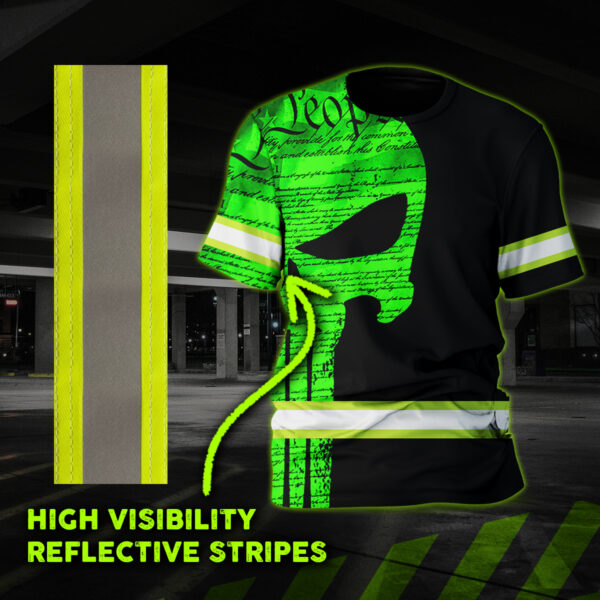 Hi Vis Shirt Reflective Skull Green Neon US Flag Custom Name Safety Workwear For Workers, Runners, Cyclists, Trucker, Operator, Patriotic
