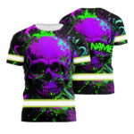 Hi Vis Shirt Reflective Tapes Violet Neon Skull Safety Workwear For Workers