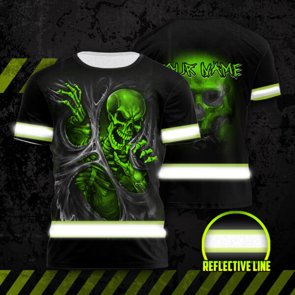 Hi Vis Shirt Reflective Skull Safety Workwear For Skull Lovers, Workers, Operator, Cyclists, Patriotic