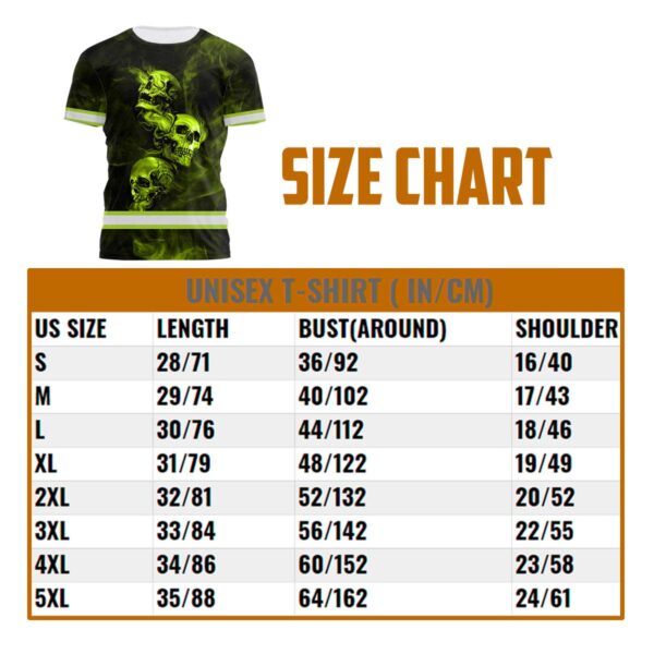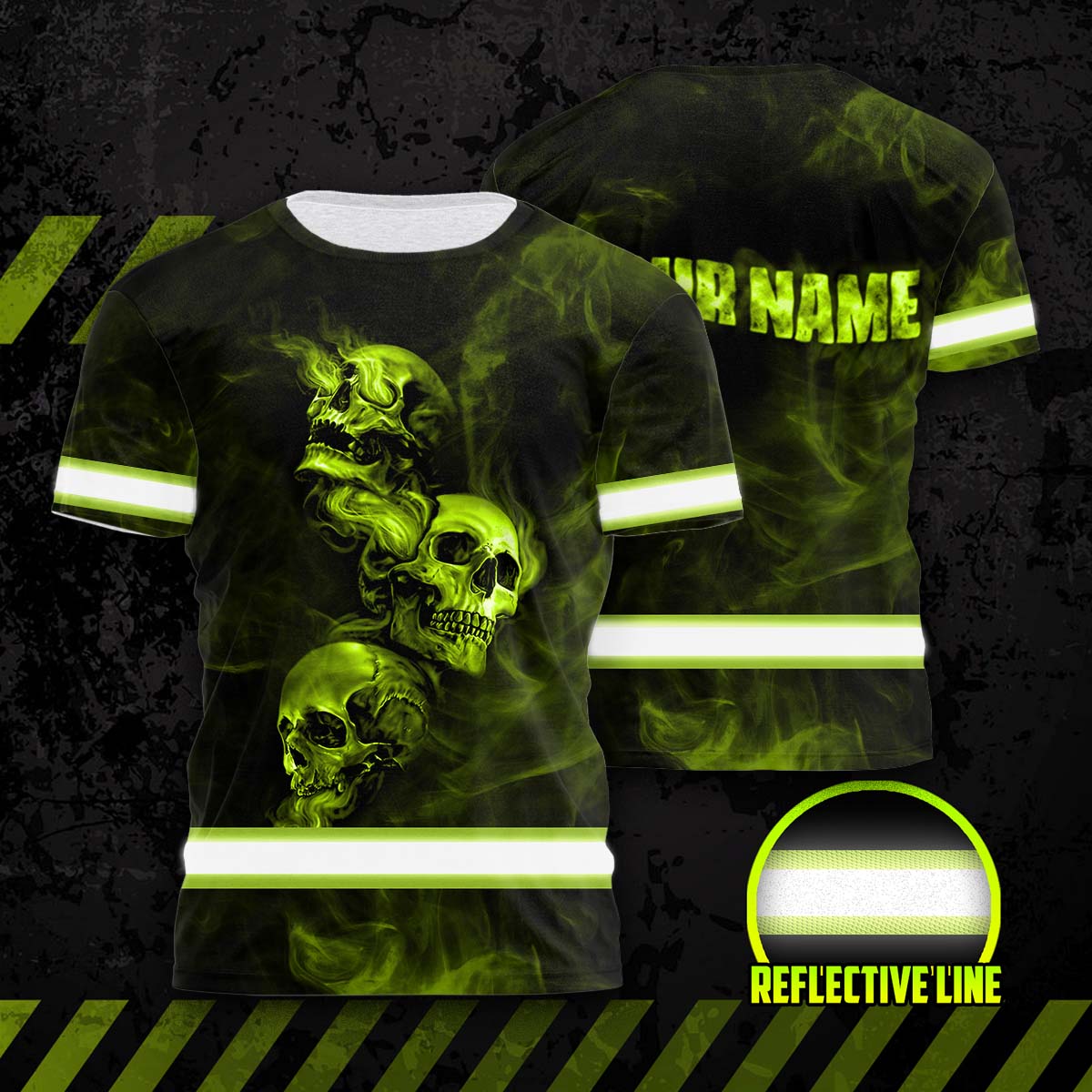 Looking for some high visibility safety clothing? How about a shirt that will really stand out in the crowd? Check out this Hi Vis shirt with a reflective skull and smoke design. It’s perfect for workers who need to be safe and visible on the job. Plus, you can customize the name on the front so it’s just right for you. Give it a try today!