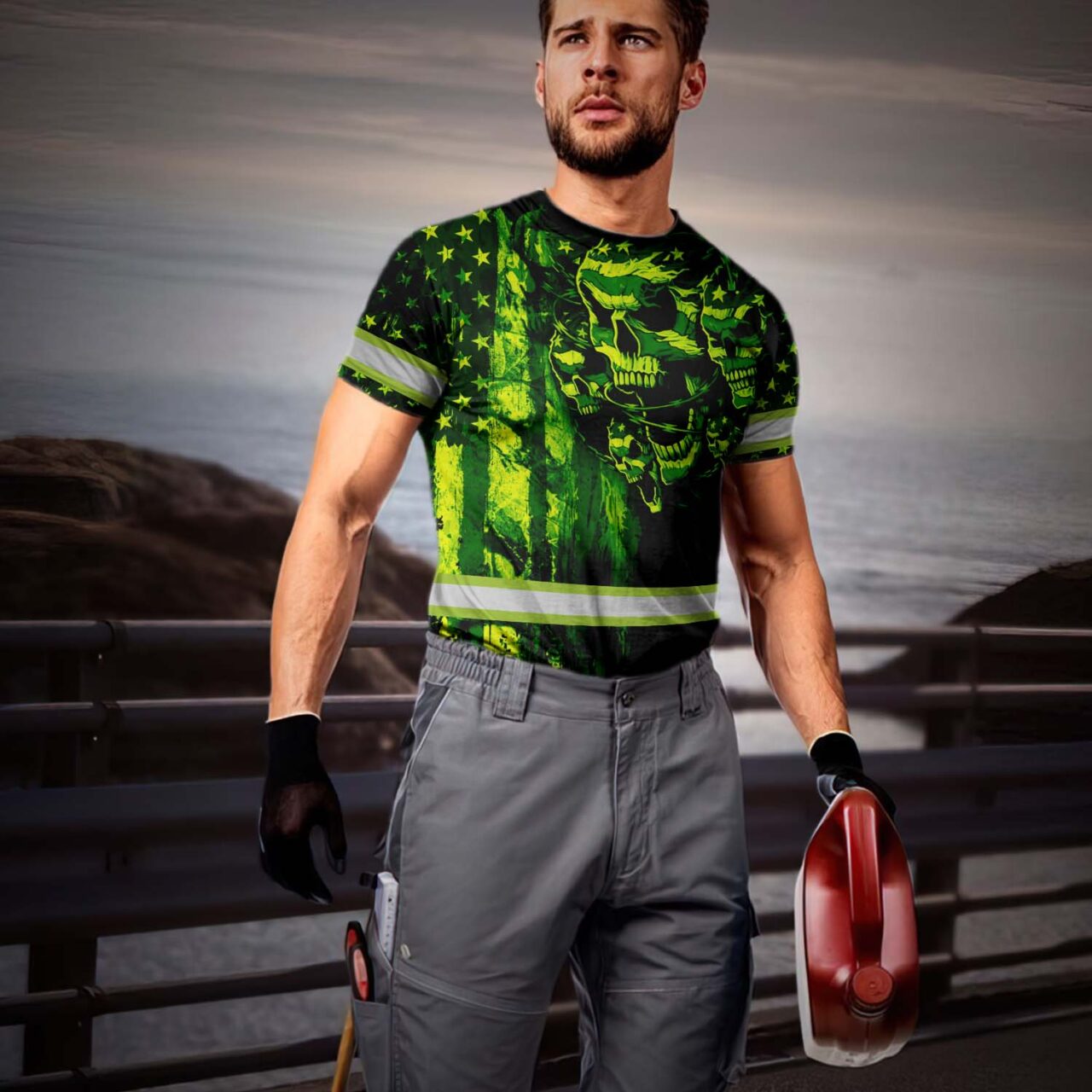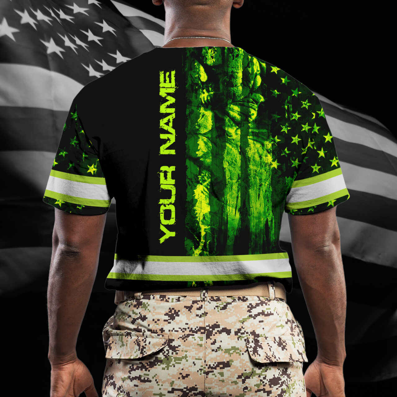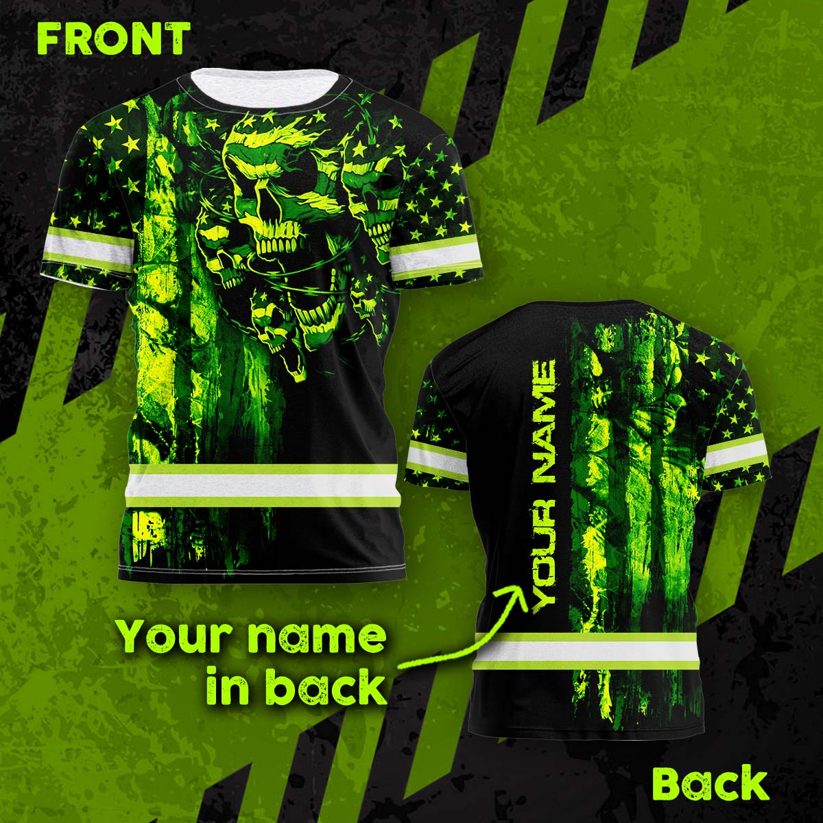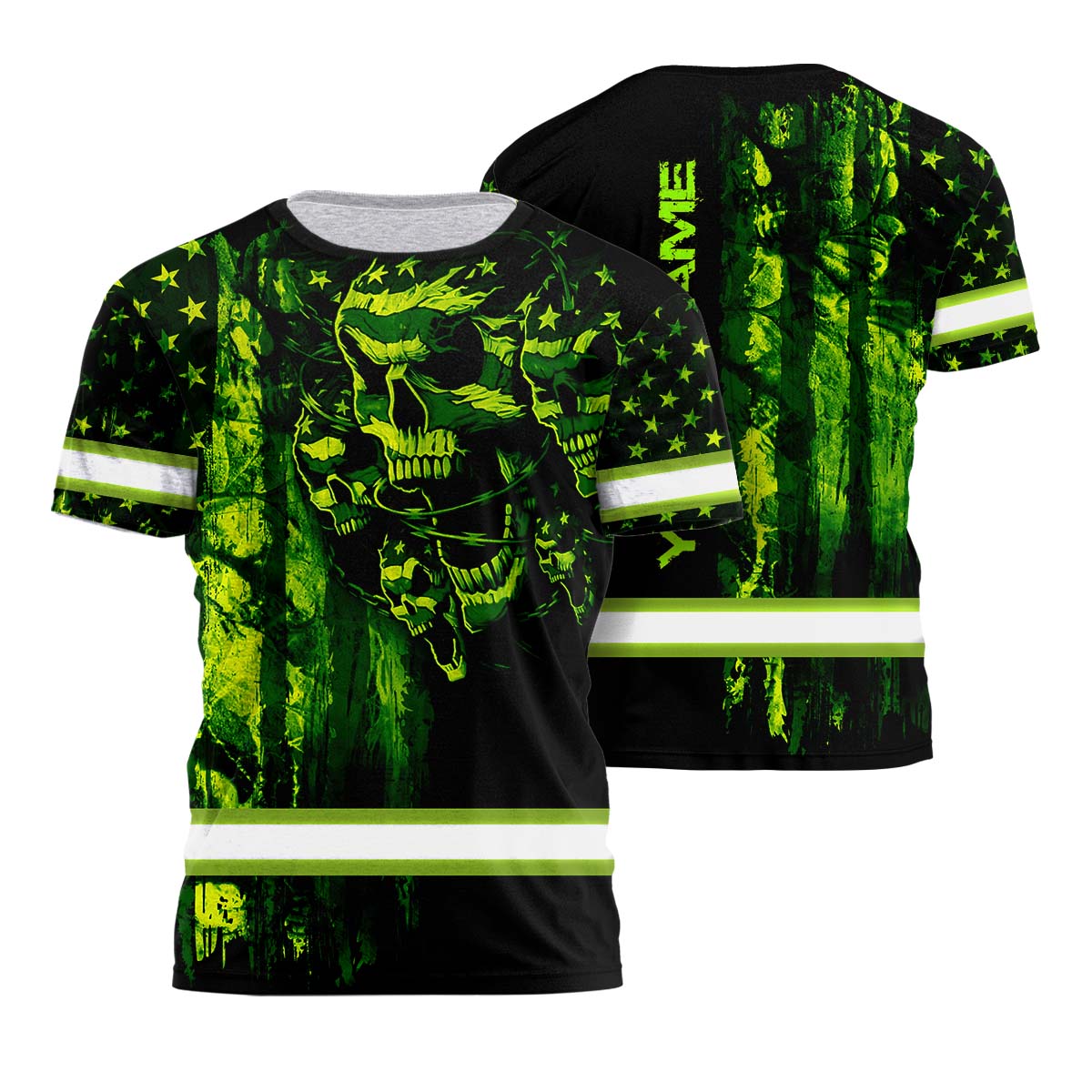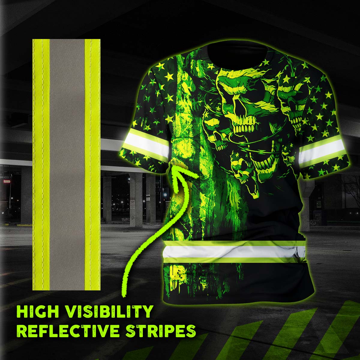 Hi Vis Shirt Reflective Tapes American Flag Green Neon Skull Custom Name