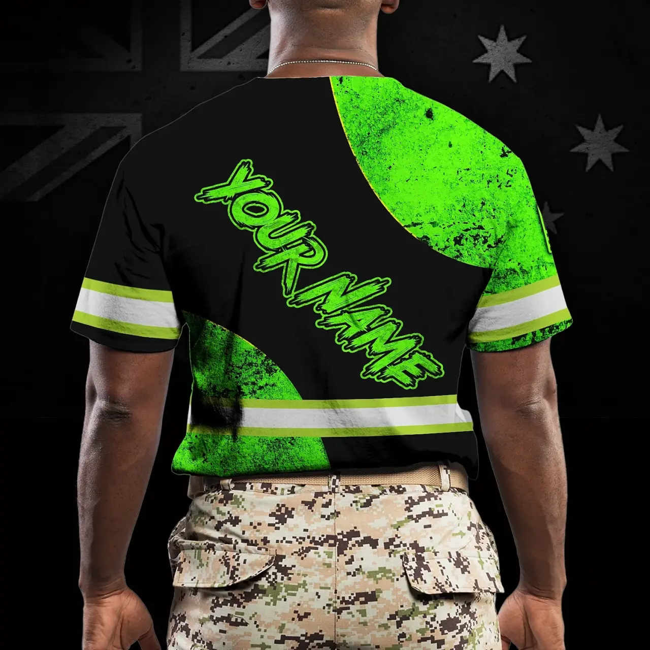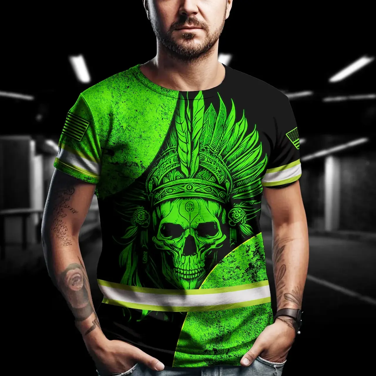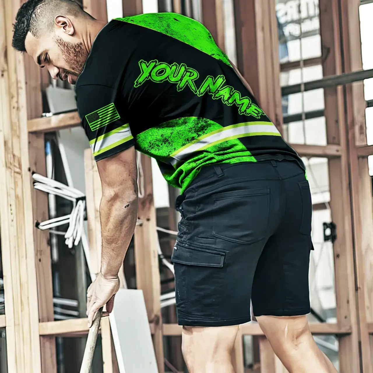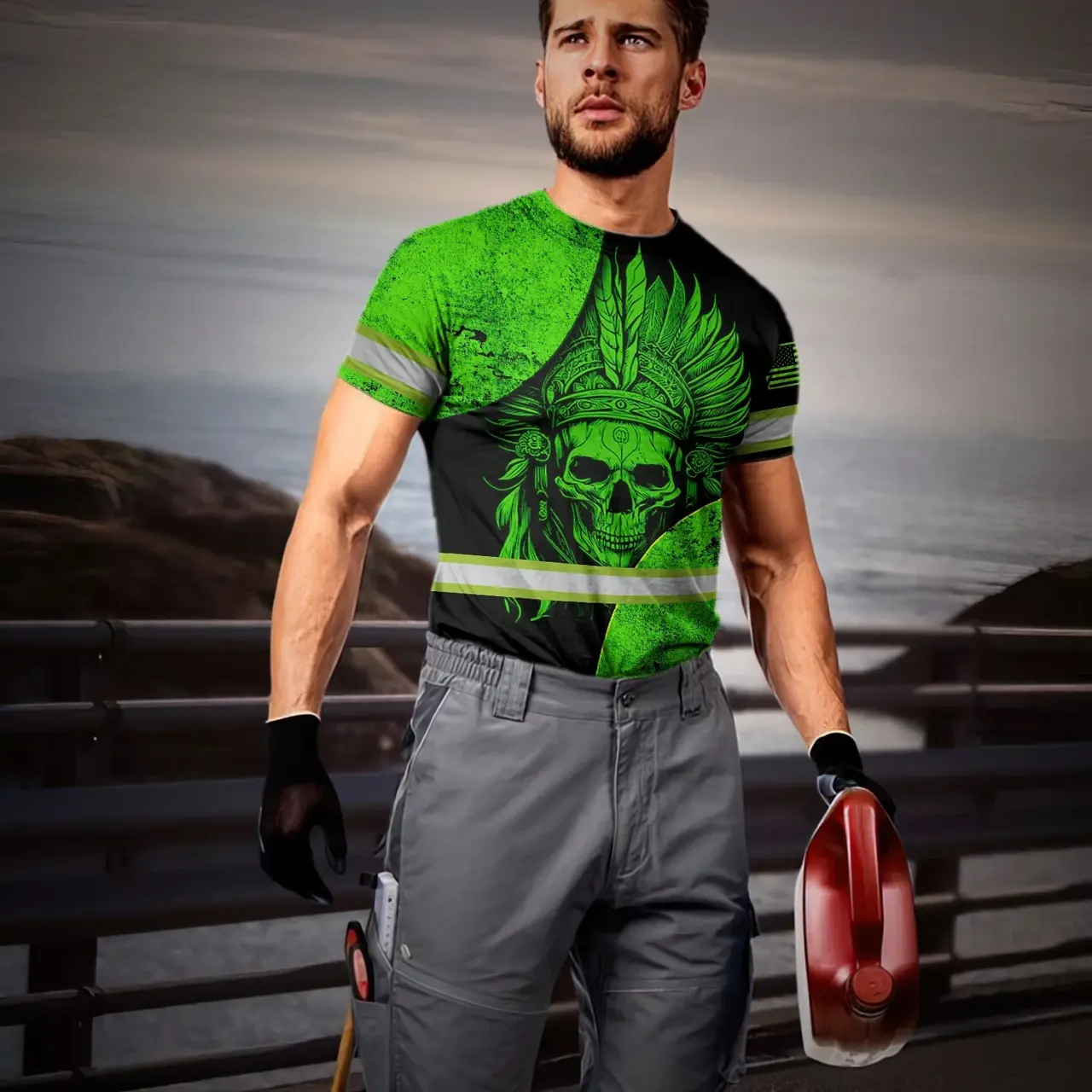 Hi Vis Shirt Reflective Tapes American Skull US Flag Custom Name Safety Workwear For Workers, Truckers, Operators