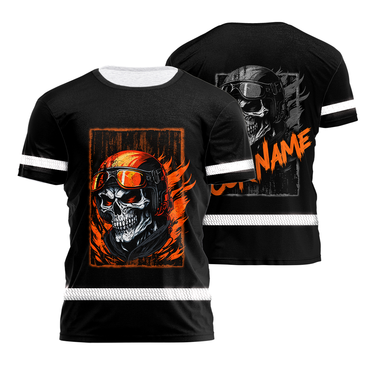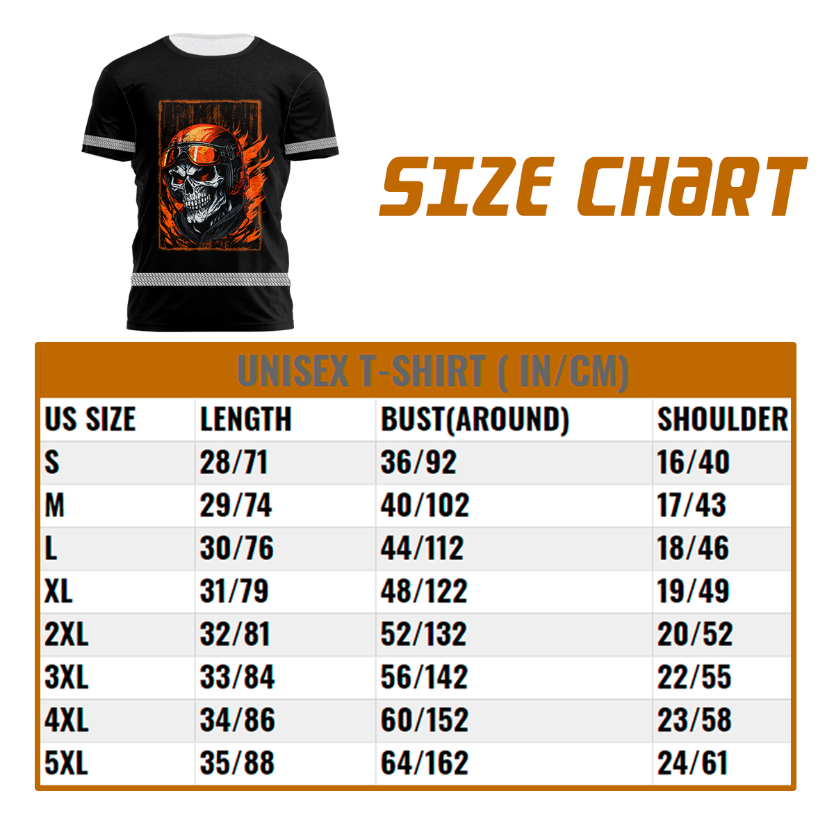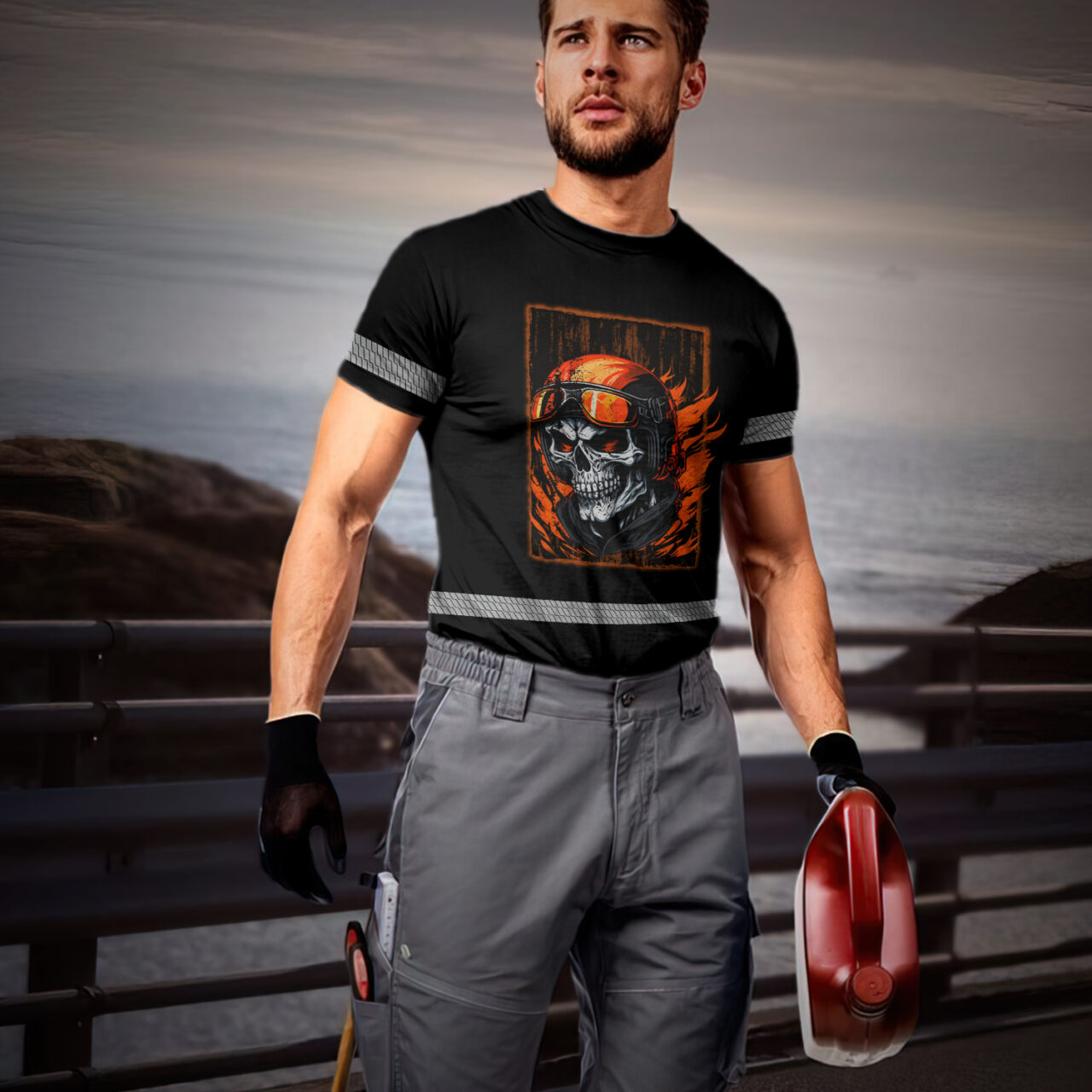Hi Vis Shirt Reflective Tapes Black Orange Skull Biker Shirt Custom Name Safety Workwear For Biker, Worker, Operator, Patriotic