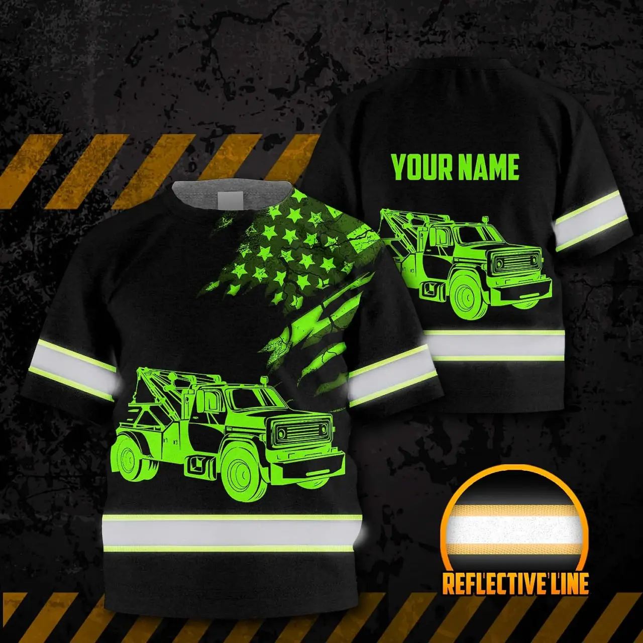 Hi Vis Shirt Reflective Tapes Black Tow Truck Driver Custom Name For Kids
